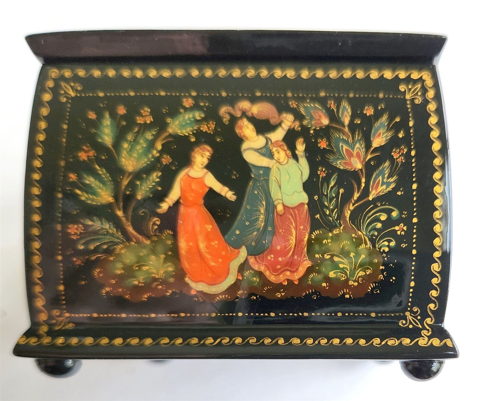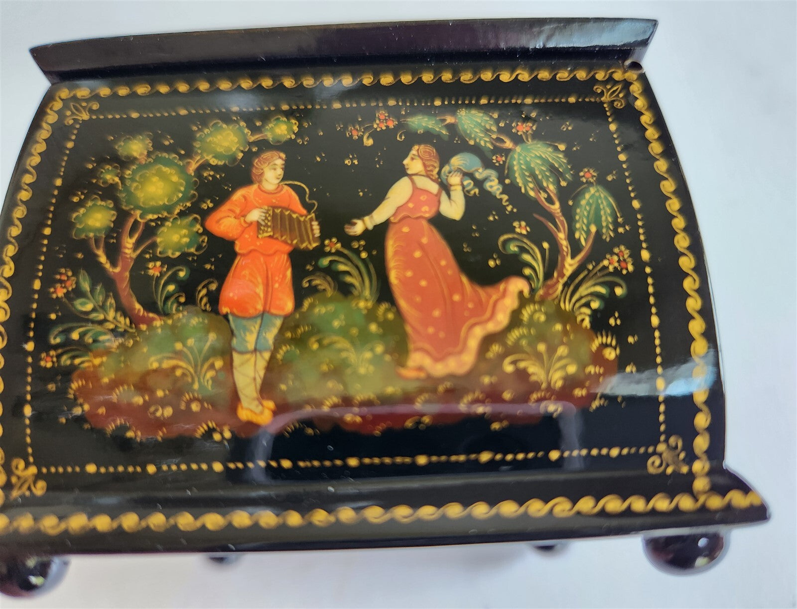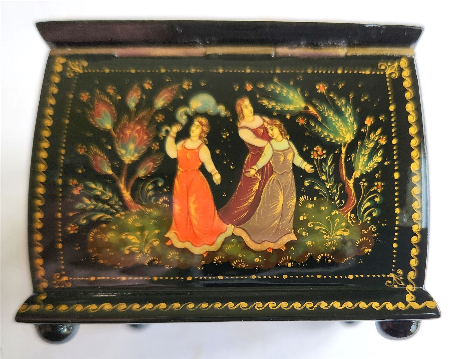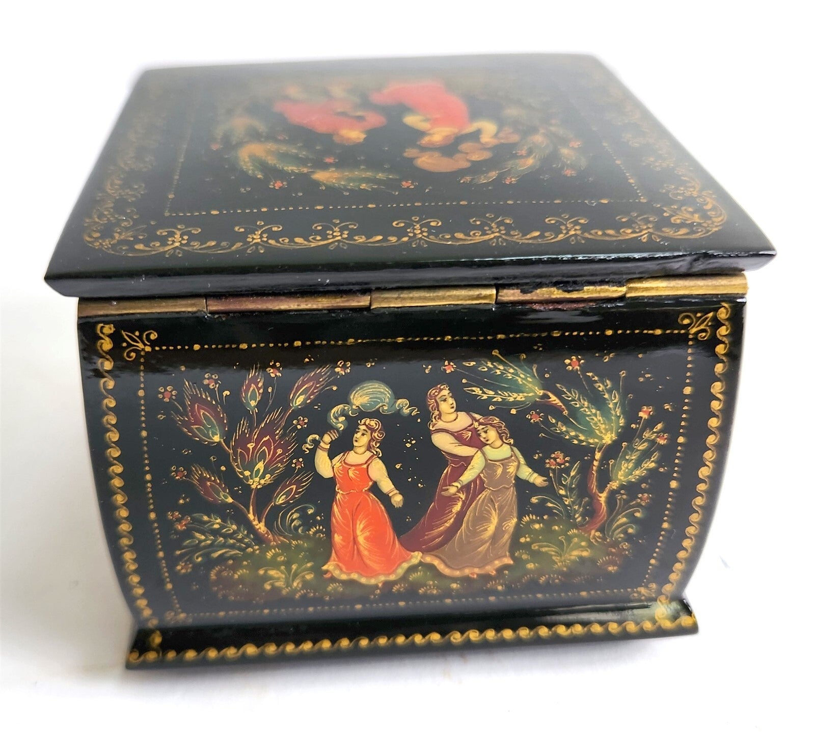 RUSSIAN PALEKH SCHOOL 5 SIDED VINTAGE LACQUER BOX ARTIST SIGNED