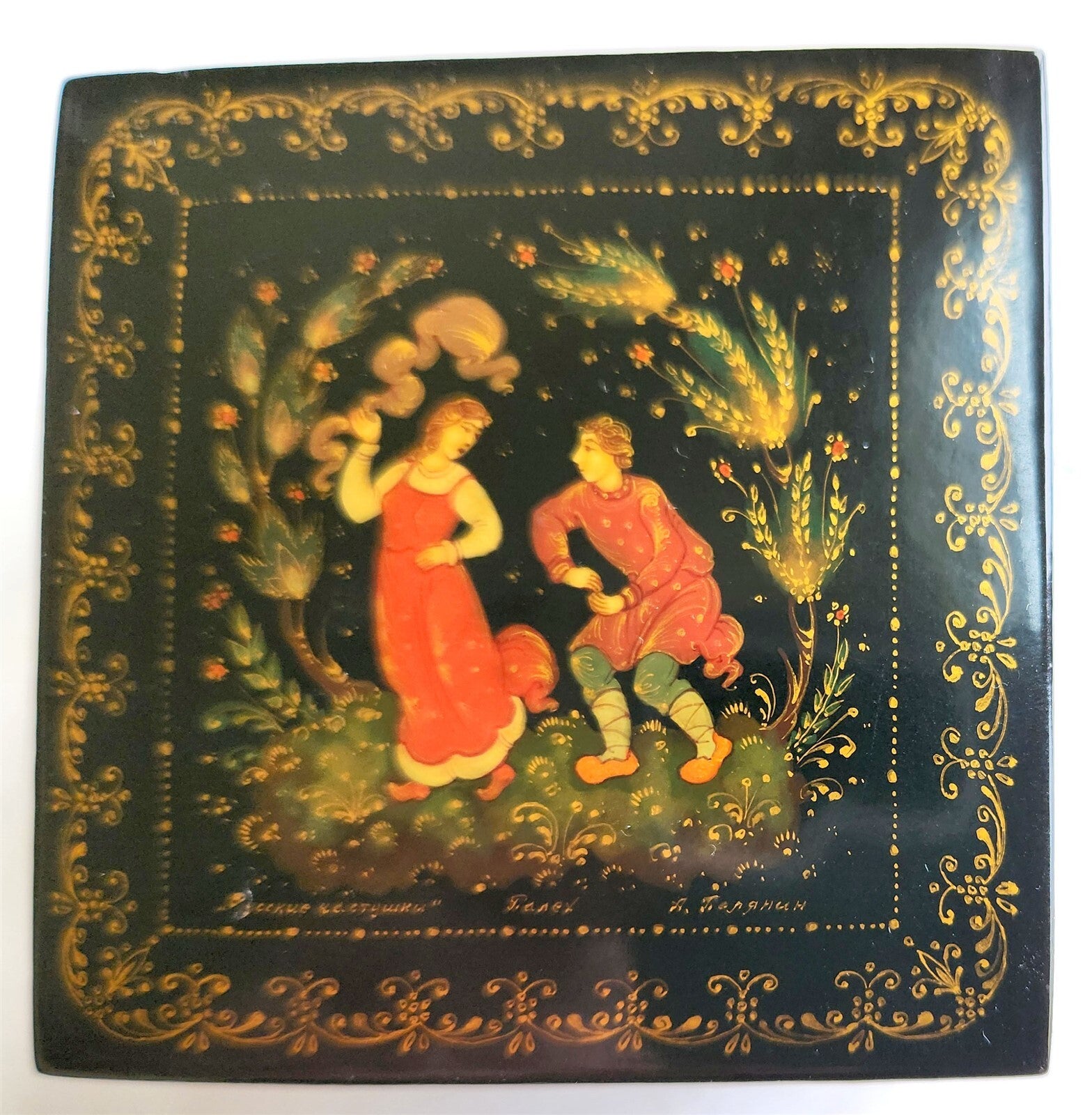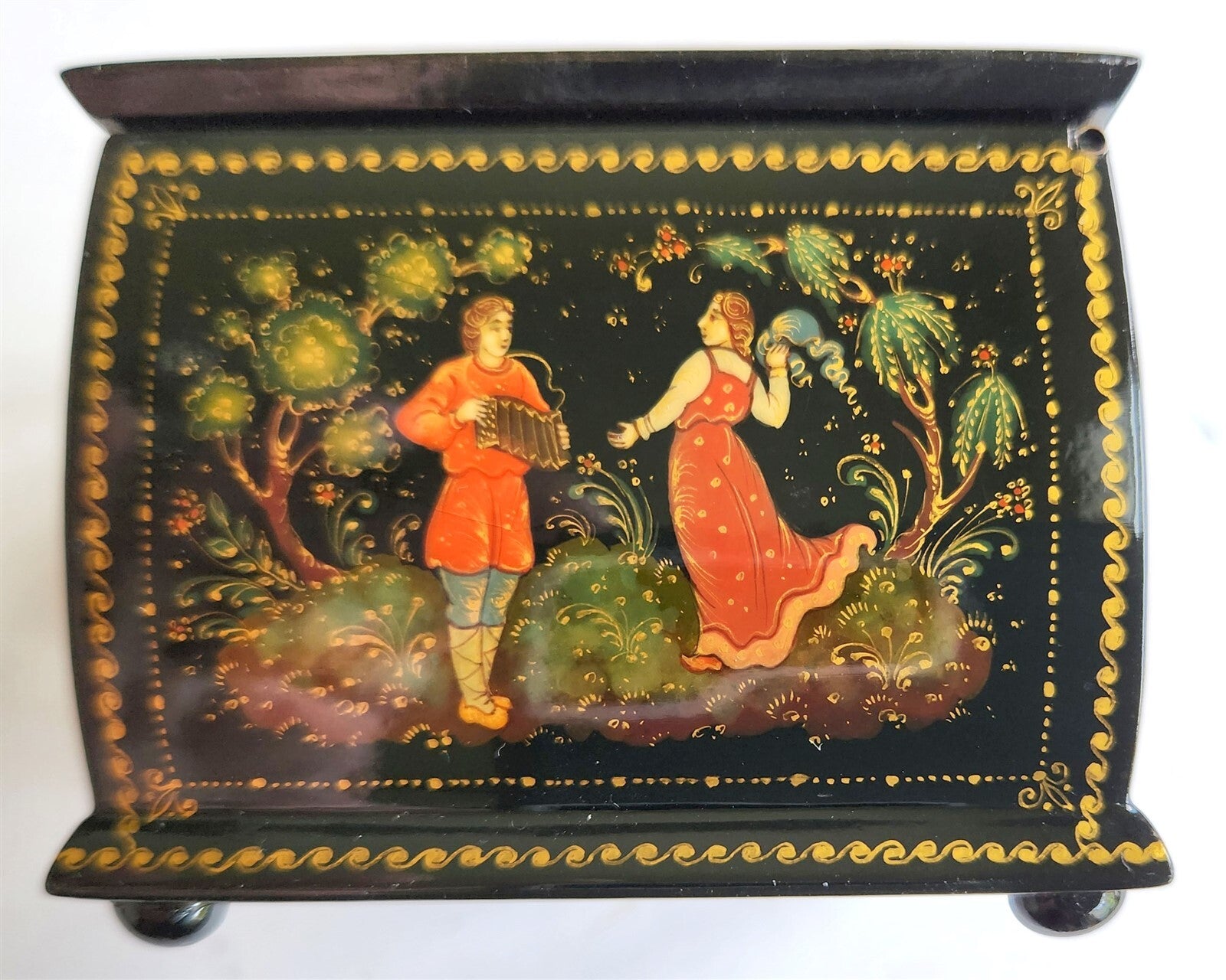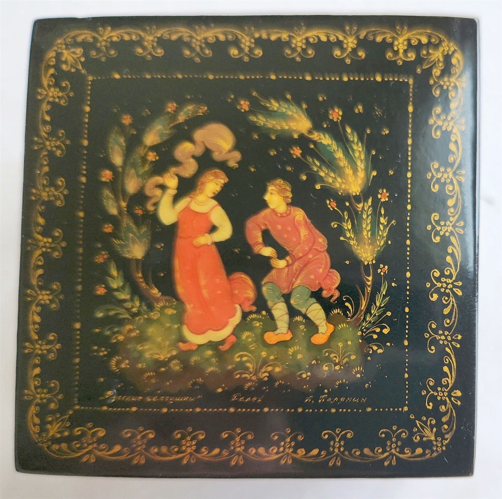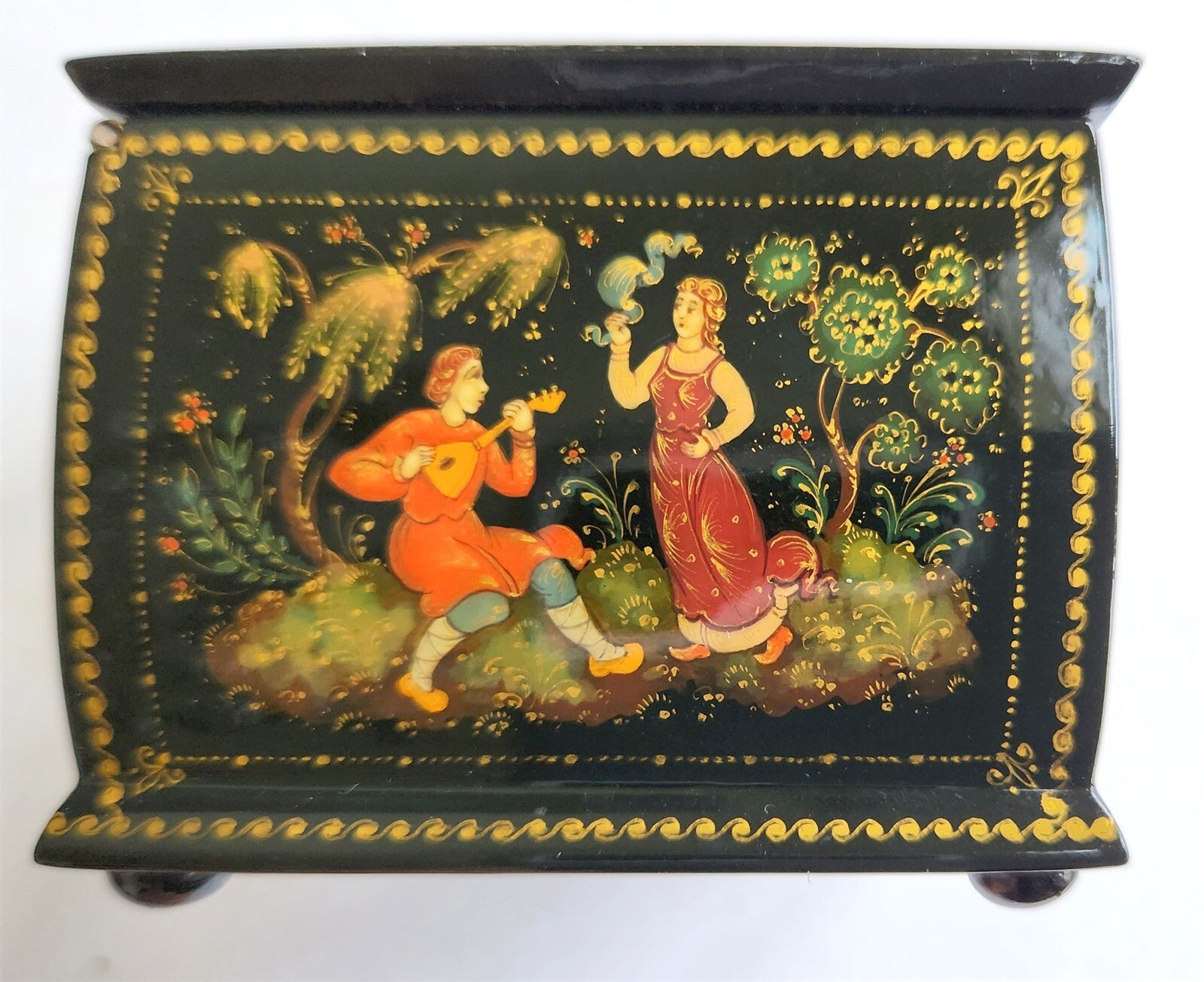 RUSSIAN PALEKH SCHOOL 5 SIDED VINTAGE LACQUER BOX ARTIST SIGNED