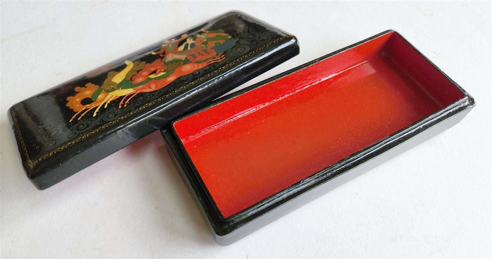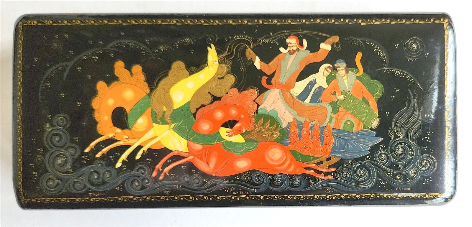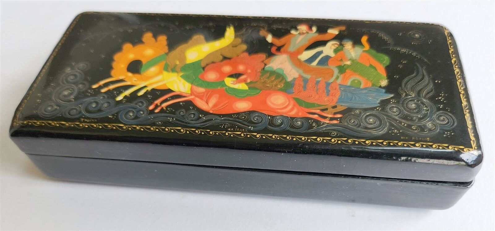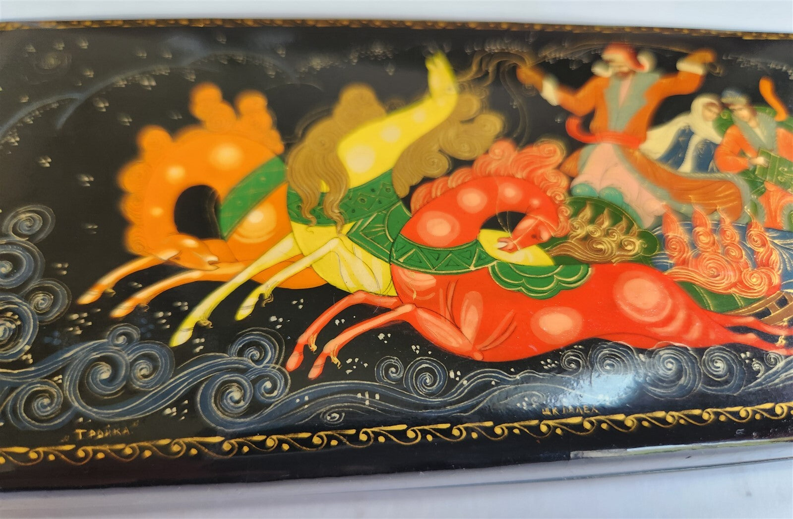 RUSSIAN PALEKH SCHOOL VINTAGE LACQUER BOX Troika SIGNED by ARTIST