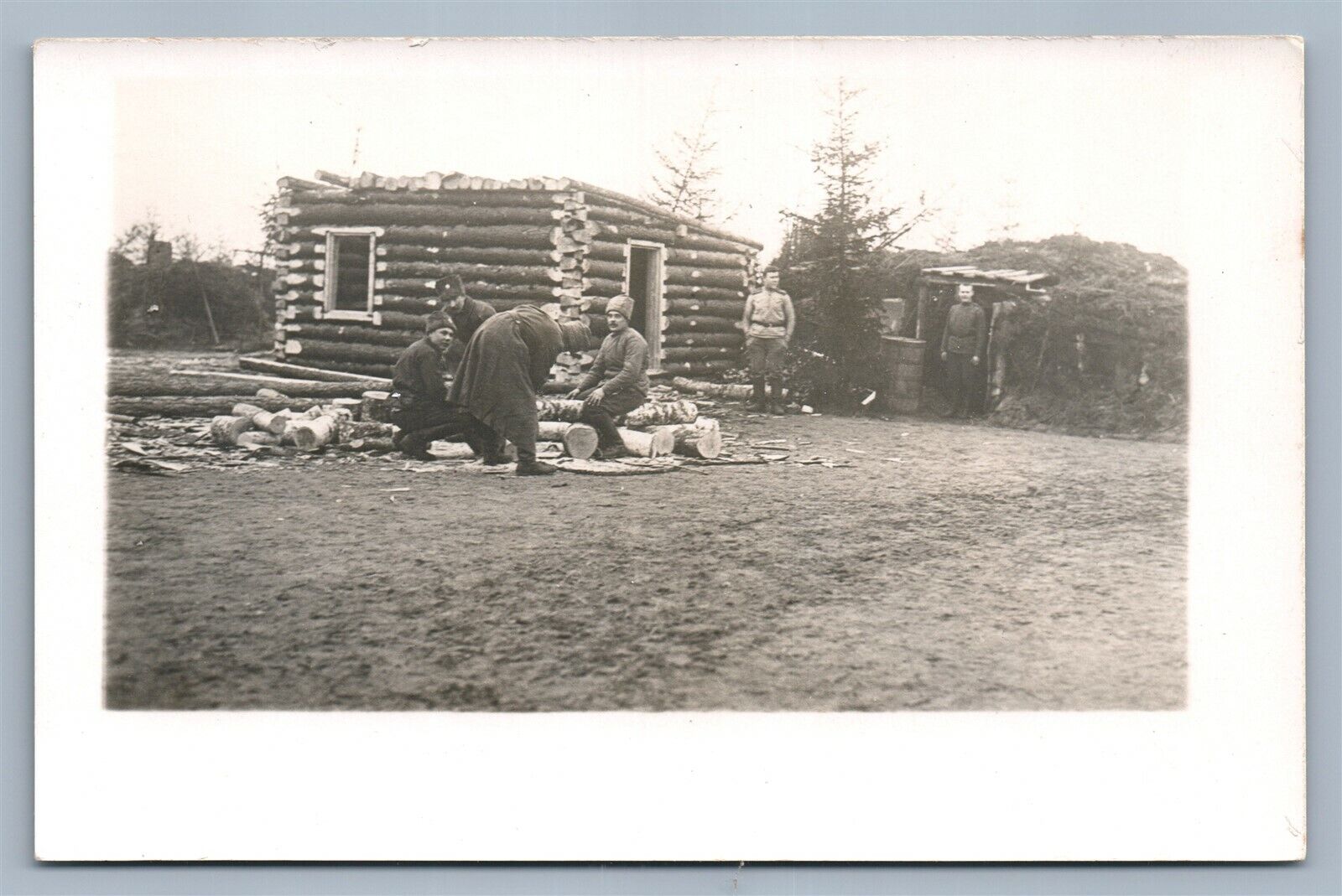 RUSSIAN WWI SOLDIERS HOUSE CONSTRUCTION ANTIQUE REAL PHOTO RPPC