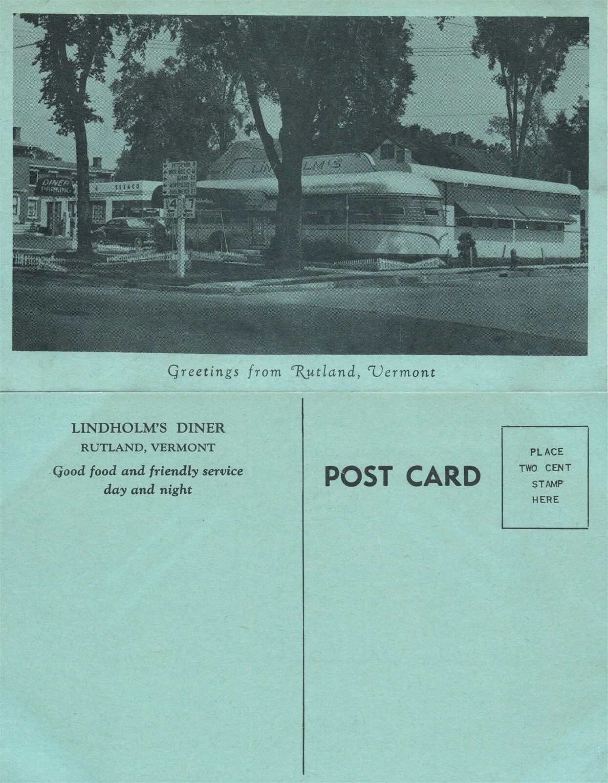 RUTLAND VT LINDHOLM'S DINNER RESTAURANT ADVERTISING VINTAGE POSTCARD