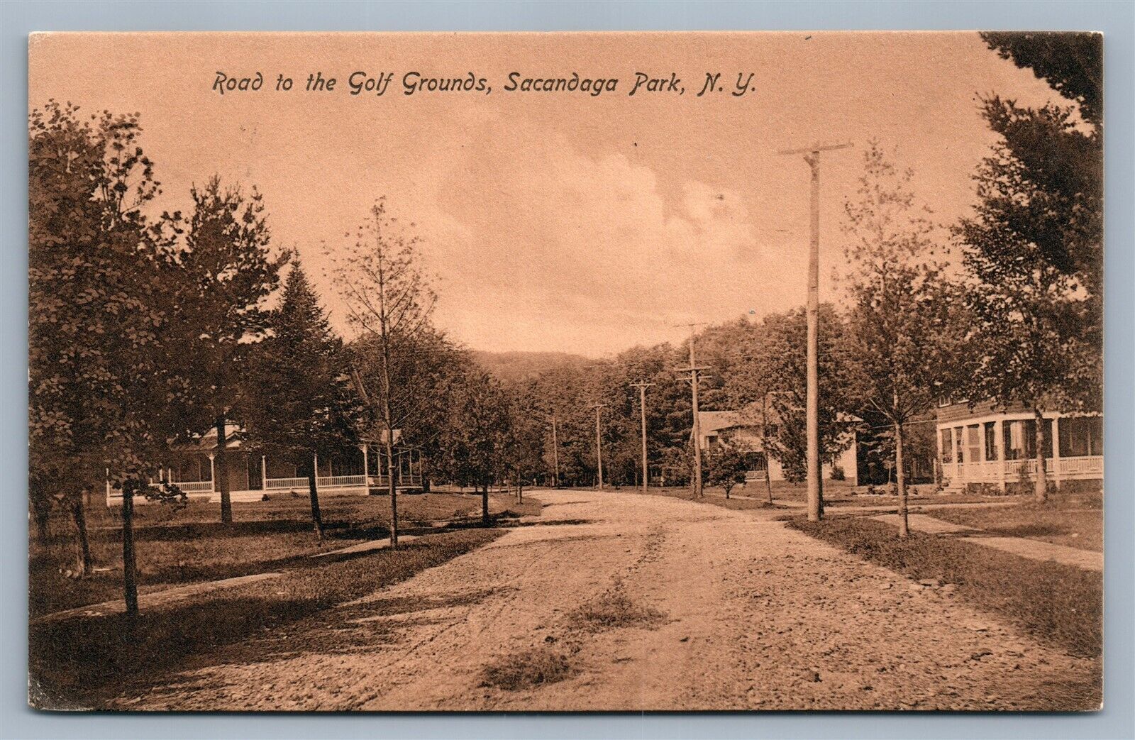 SACANDOGA PARK NY ROAD TO GOLF GROUNDS ANTIQUE POSTCARD