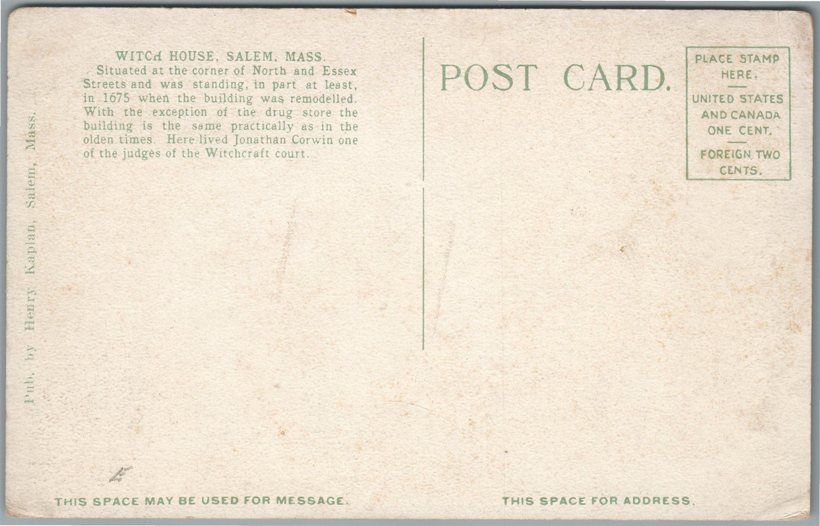 SALEM MA WITCH HOUSE ANTIQUE POSTCARD