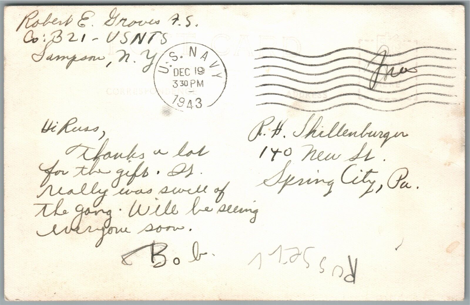 SAMPSON NY ANCHORED TO DEMOCRACY LIVING USN VINTAGE REAL PHOTO POSTCARD RPPC