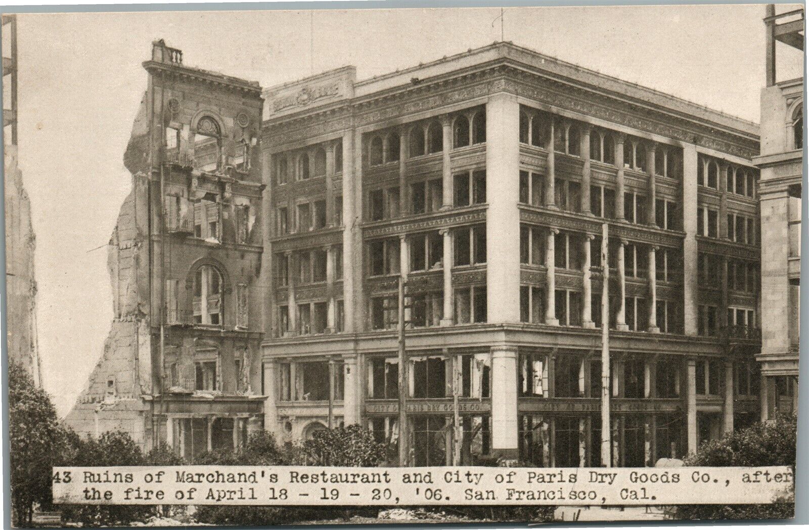 SAN FRANCISCO CA RUINS OF MARCHAND'S RESTAURANT AFTER 1906 FIRE ANTIQUE POSTCARD