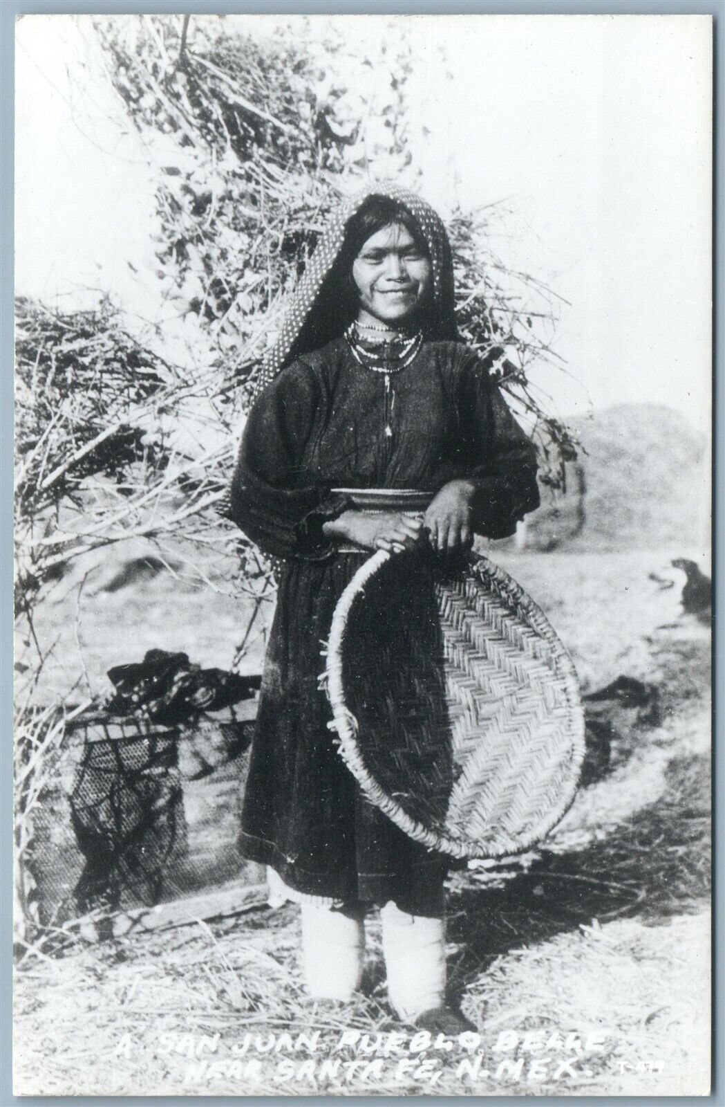 SAN JUAN PUEBLO INDIAN BELLE near SANTA FE N.M. VINTAGE REAL PHOTO POSTCARD RPPC