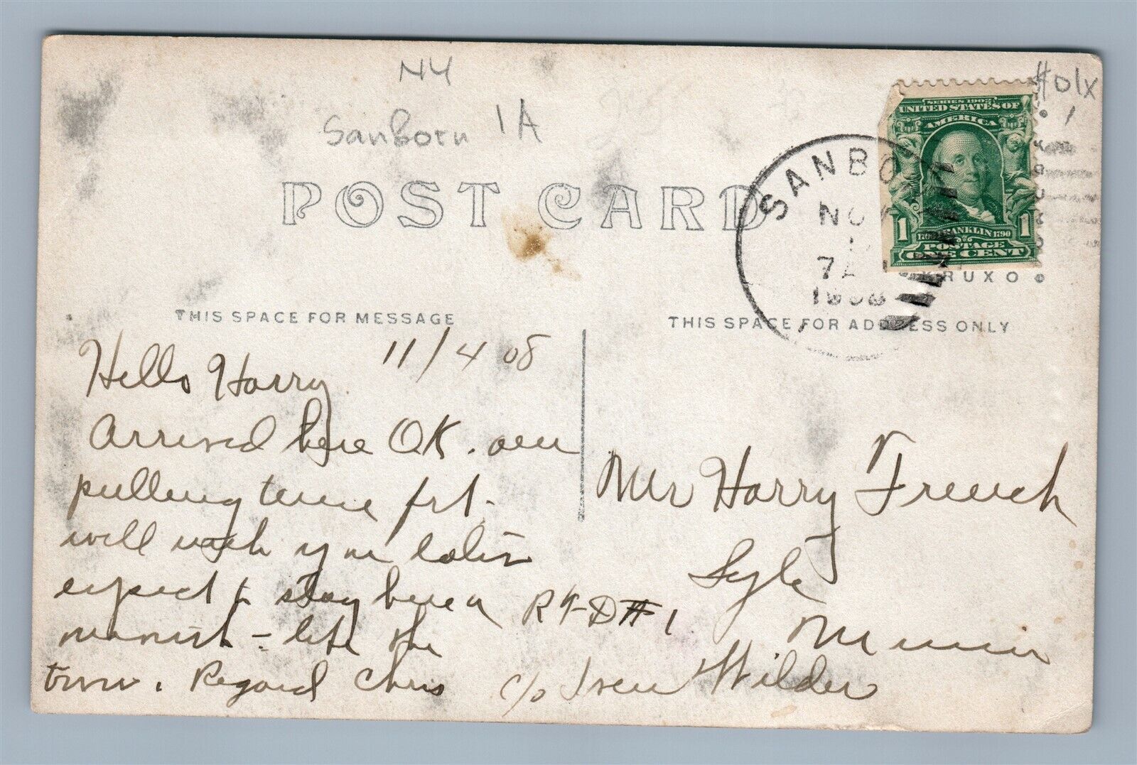 SANBORN IA STREET SCENE ANTIQUE REAL PHOTO POSTCARD RPPC
