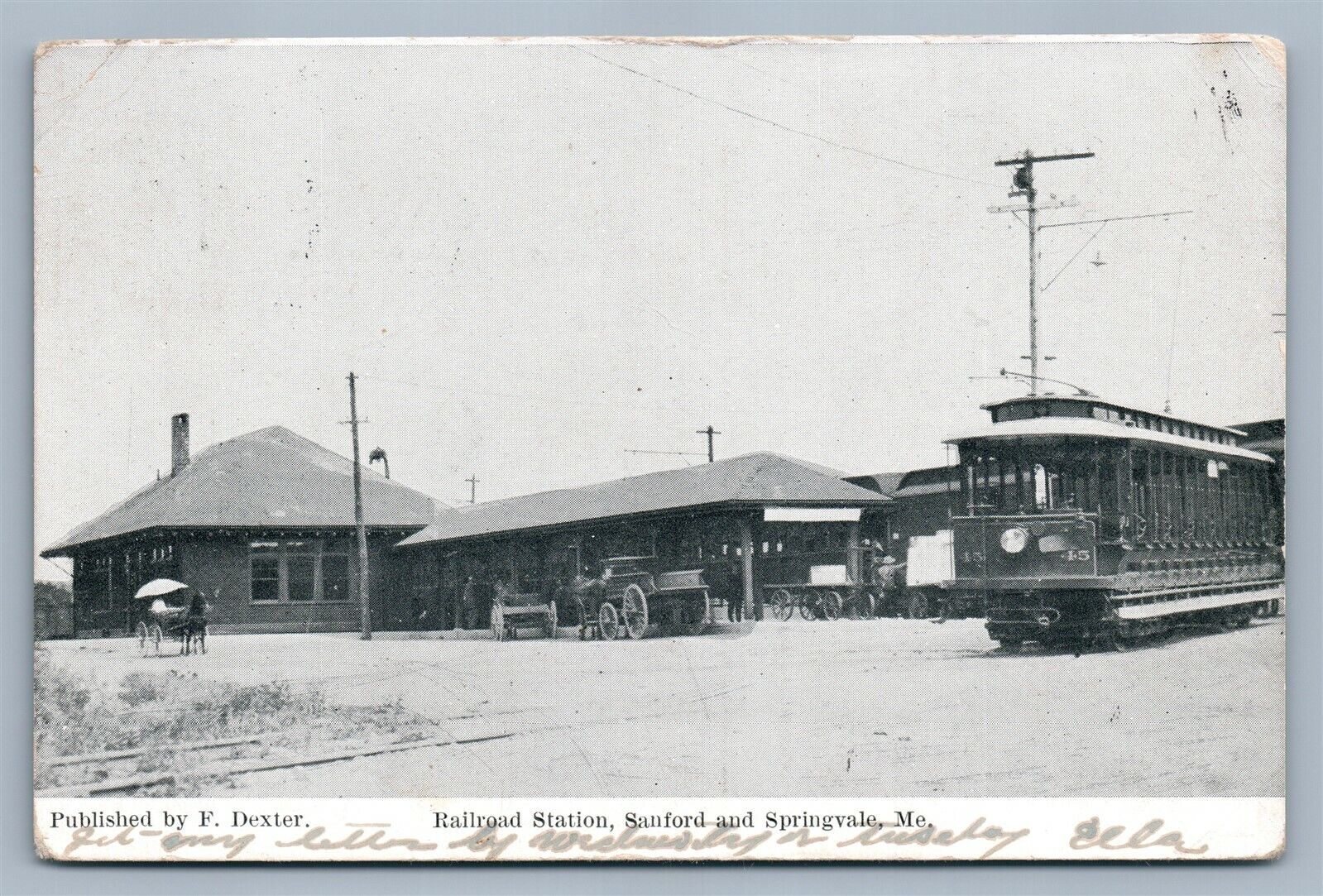 SANFORD & SPRINGVALE ME RAILROAD STATION ANTIQUE POSTCARD railway train depot