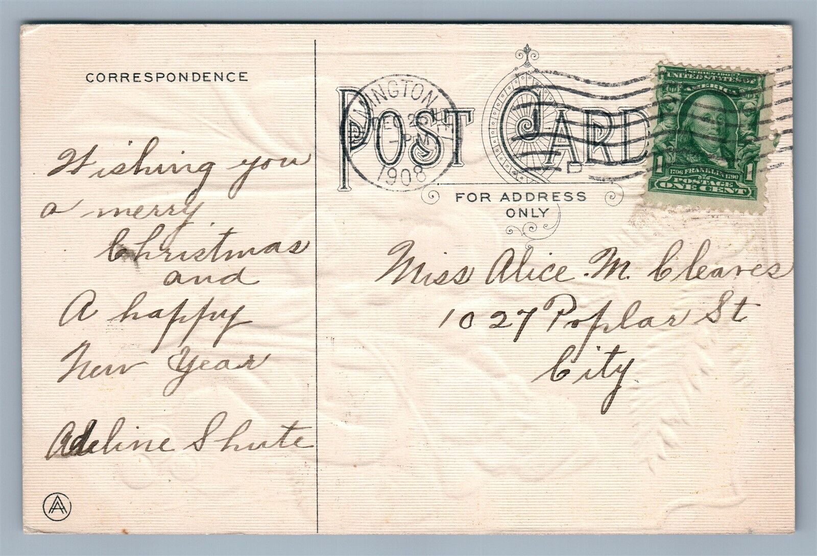 SANTA CHRISTMAS ANTIQUE 1908 EMBOSSED POSTCARD w/ ANGLE GIRL
