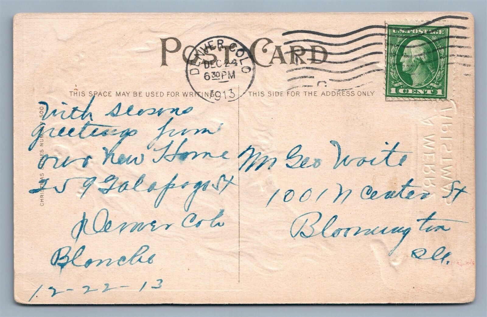 SANTA CHRISTMAS ANTIQUE EMBOSSED 1913 POSTCARD by JULIUS BIEN & CO.