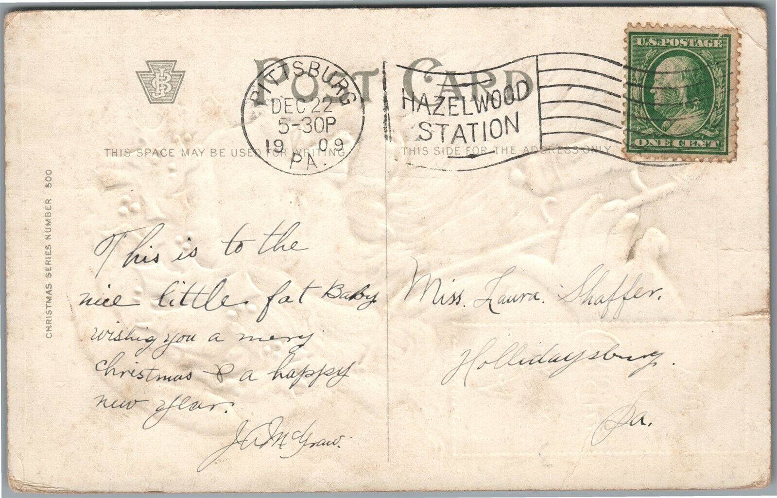 SANTA CHRISTMAS EMBOSSED 1909 ANTIQUE POSTCARD by JULIUS BIEN
