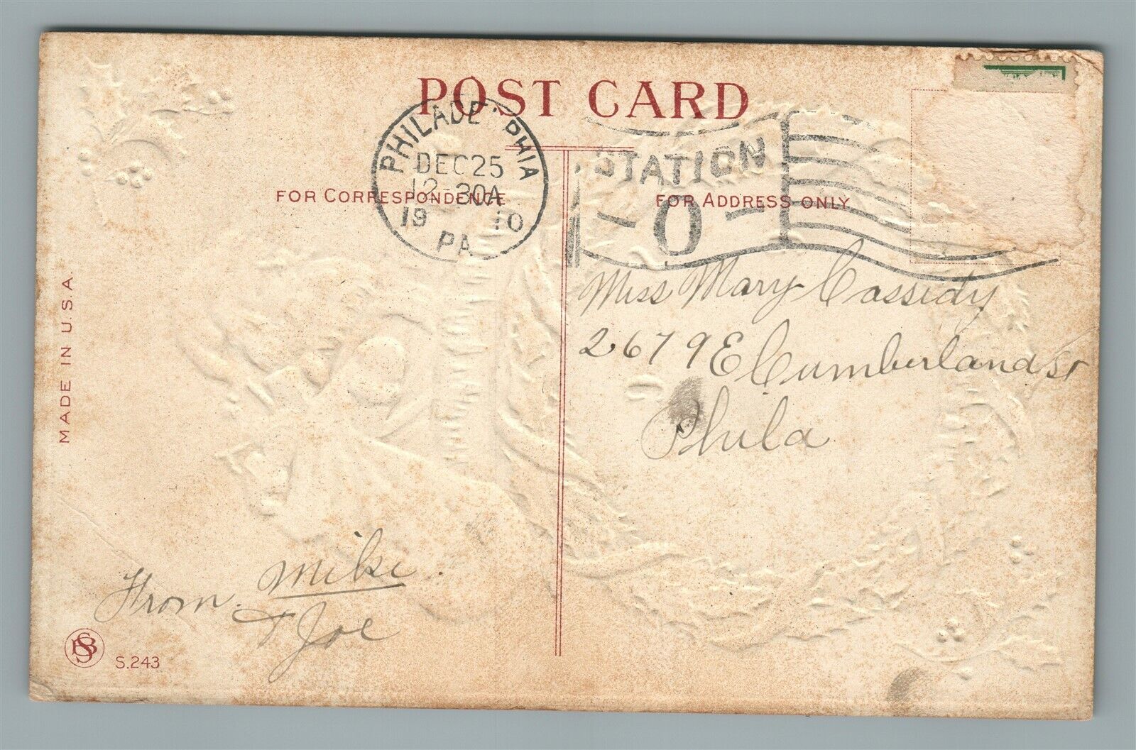 SANTA CLAUS w/ BAG OF TOPS COMES TO VISIT CHRISTMAS ANTIQUE POSTCARD