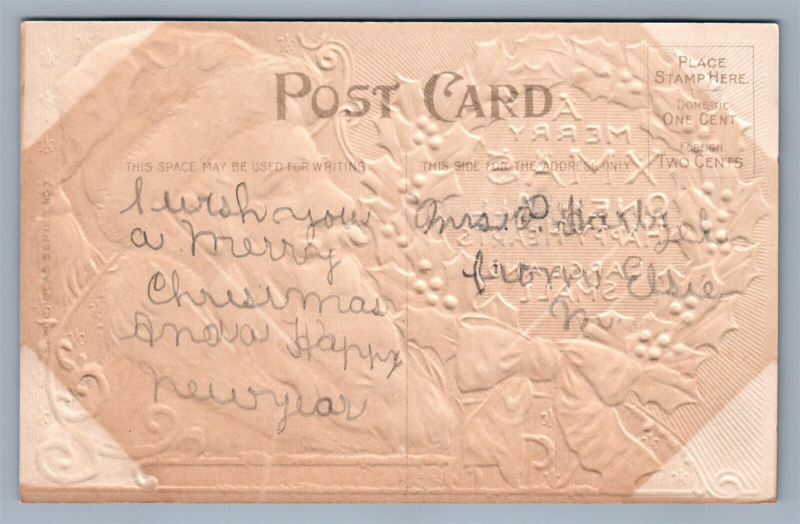 SANTA EMBOSSED CHRISTMAS ANTIQUE POSTCARD MERRY XMAS ONE & ALL