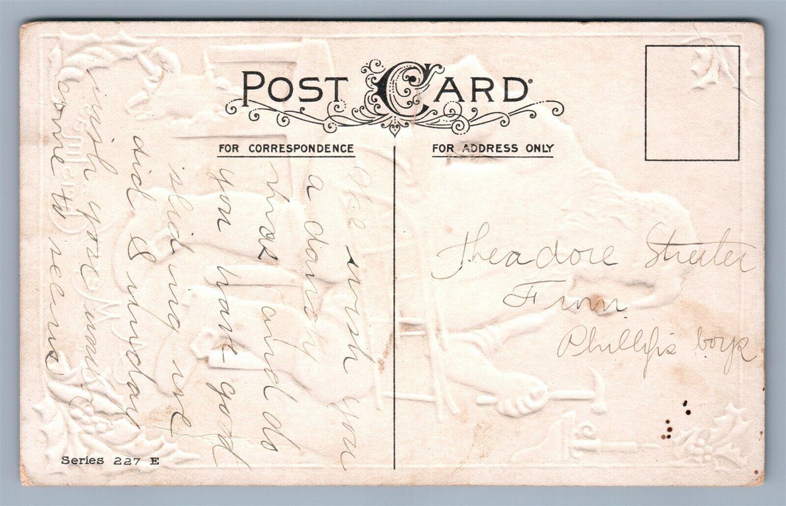 SANTA FIXING SNOW SLEDS CHRISTMAS EMBOSSED ANTIQUE POSTCARD