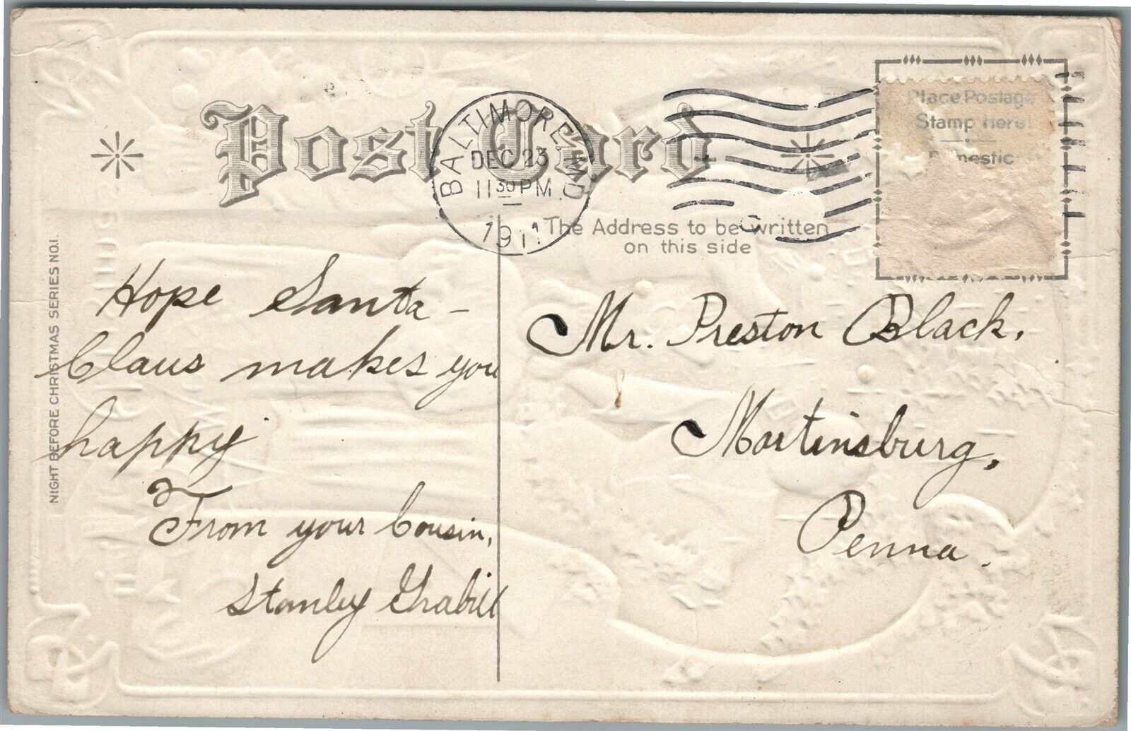 SANTA MERRY CHRISTMAS TREE DECORATING ANTIQUE POSTCARD