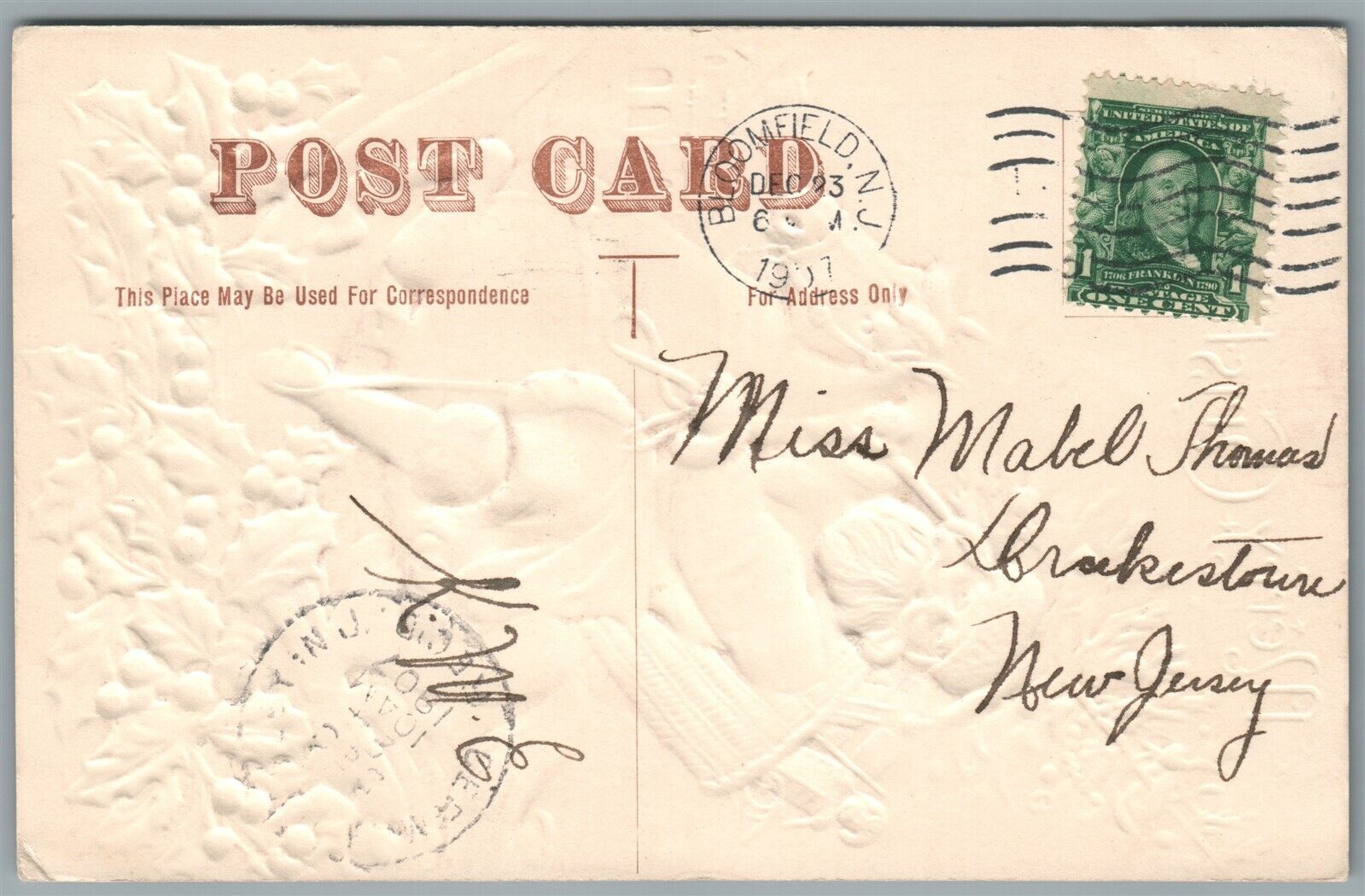 SANTA RIDING HORSE MERRY CHRISTMAS EMBOSSED ANTIQUE POSTCARD