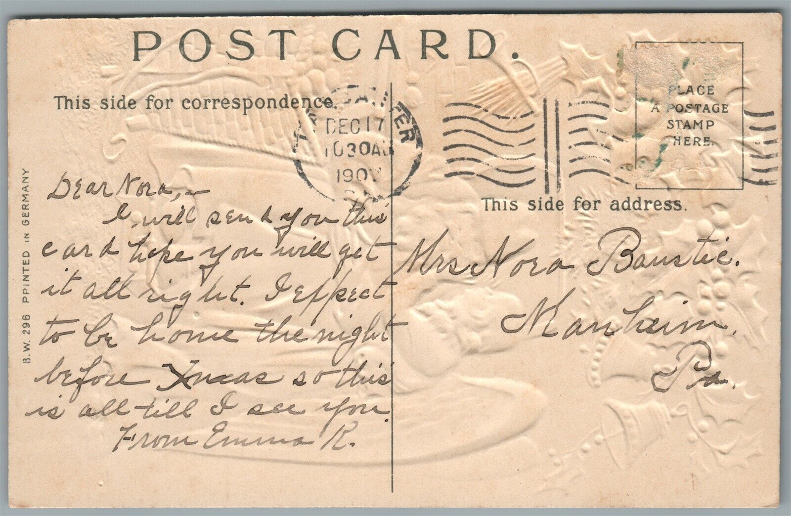 SANTA w/ ANGEL EMBOSSED ANTIQUE CHRISTMAS POSTCARD