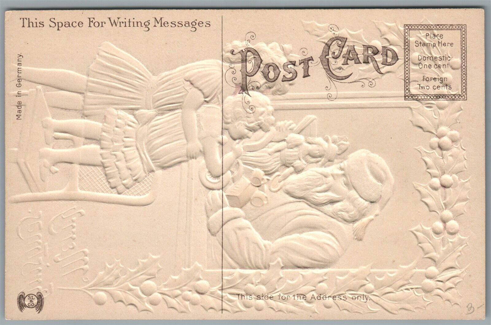 SANTA w/ LITTLE GIRLS MERRY CHRISTMAS EMBOSSED ANTIQUE POSTCARD