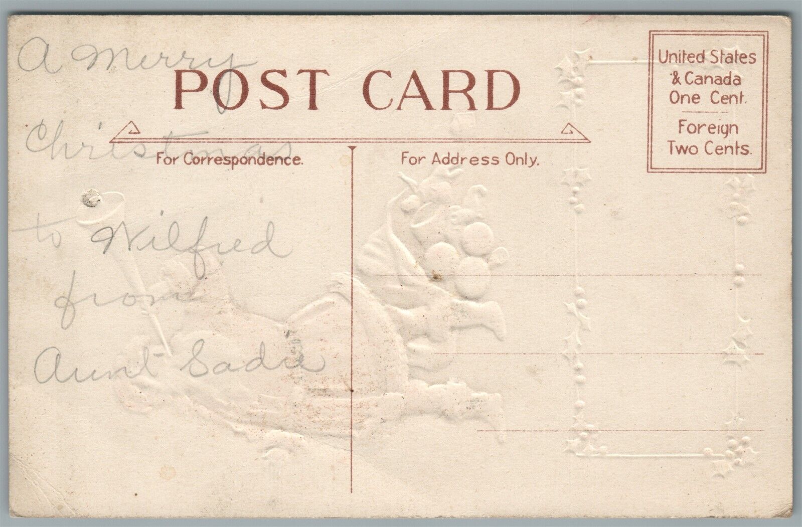 SANTA w/ TRUMPET CHRISTMAS ANTIQUE POSTCARD