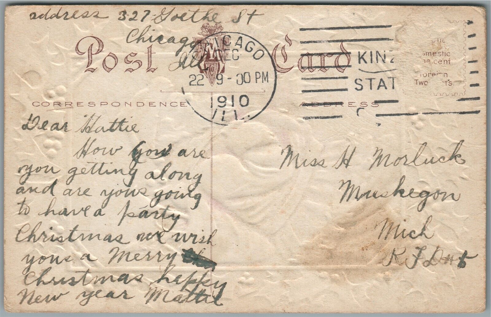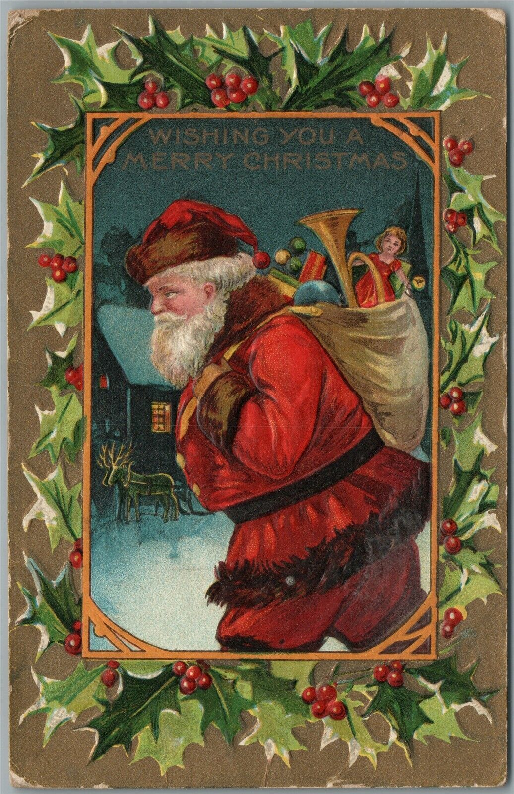 SANTA WISHING YOU A MERRY CHRISTMAS EMBOSSED 1910 ANTIQUE POSTCARD