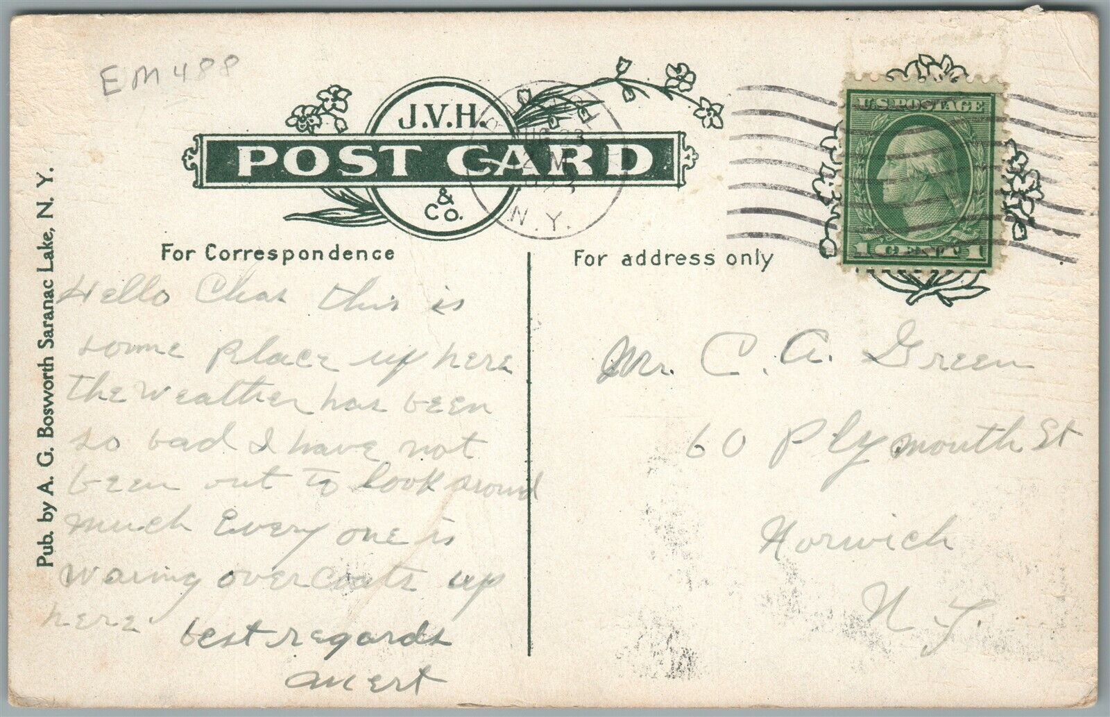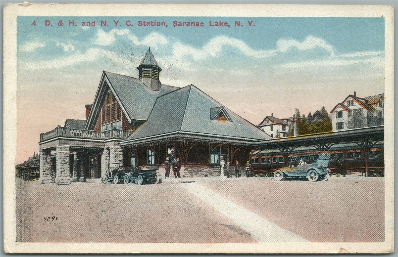 SARANAC LAKE NY RAILROAD STATION RAILWAY TRAIN DEPOT ANTIQUE POSTCARD