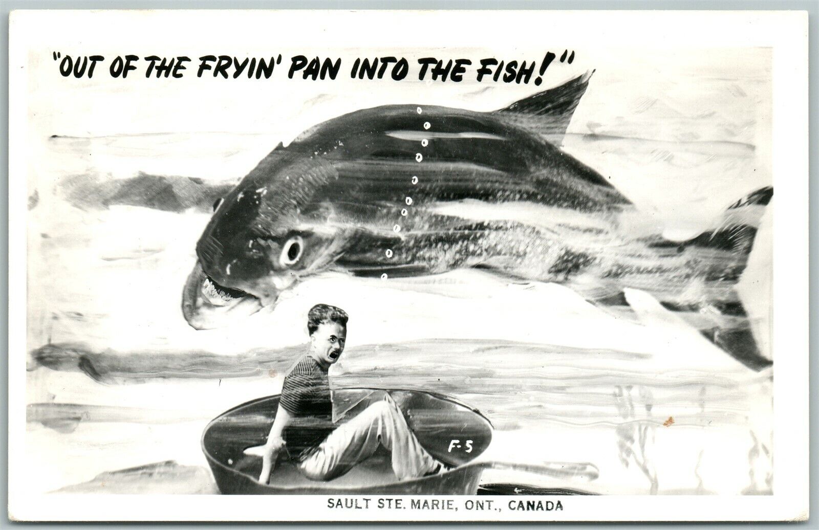SAULT STE. MARIE ONT CANADA EXAGGERATED FISHING VINTAGE REAL PHOTO POSTCARD RPPC