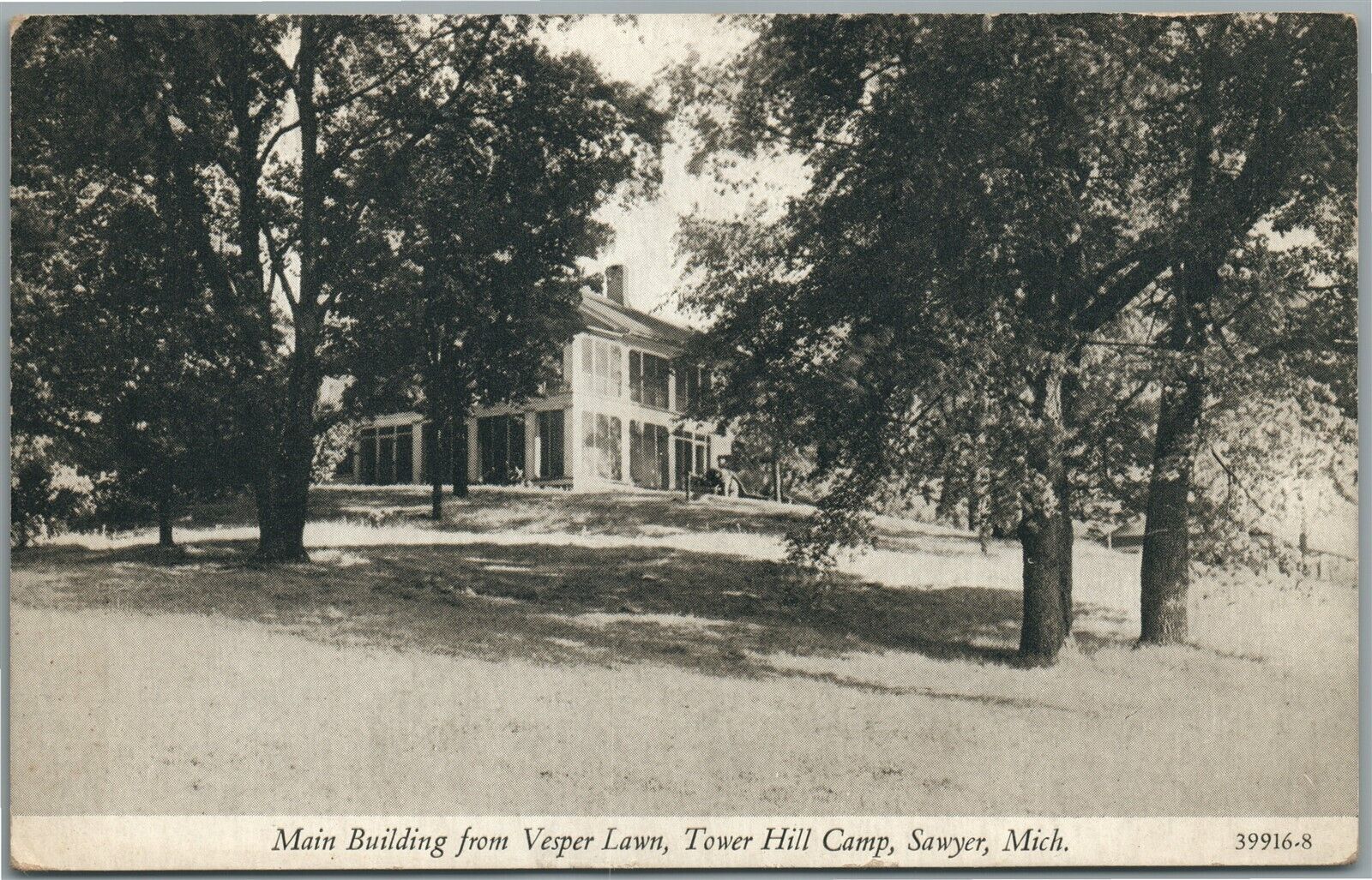SAWYER MI TOWER HILL CAMP MAIN BUILDING ANTIQUE POSTCARD