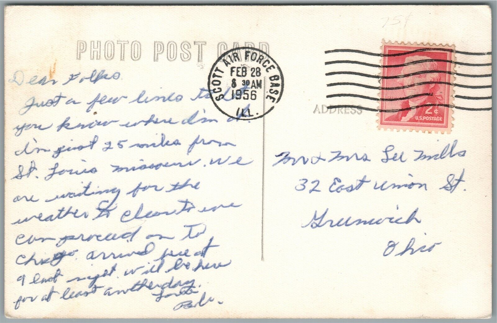 SCOTT AIR FORCE BASE VINTAGE REAL PHOTO POSTCARD RPPC