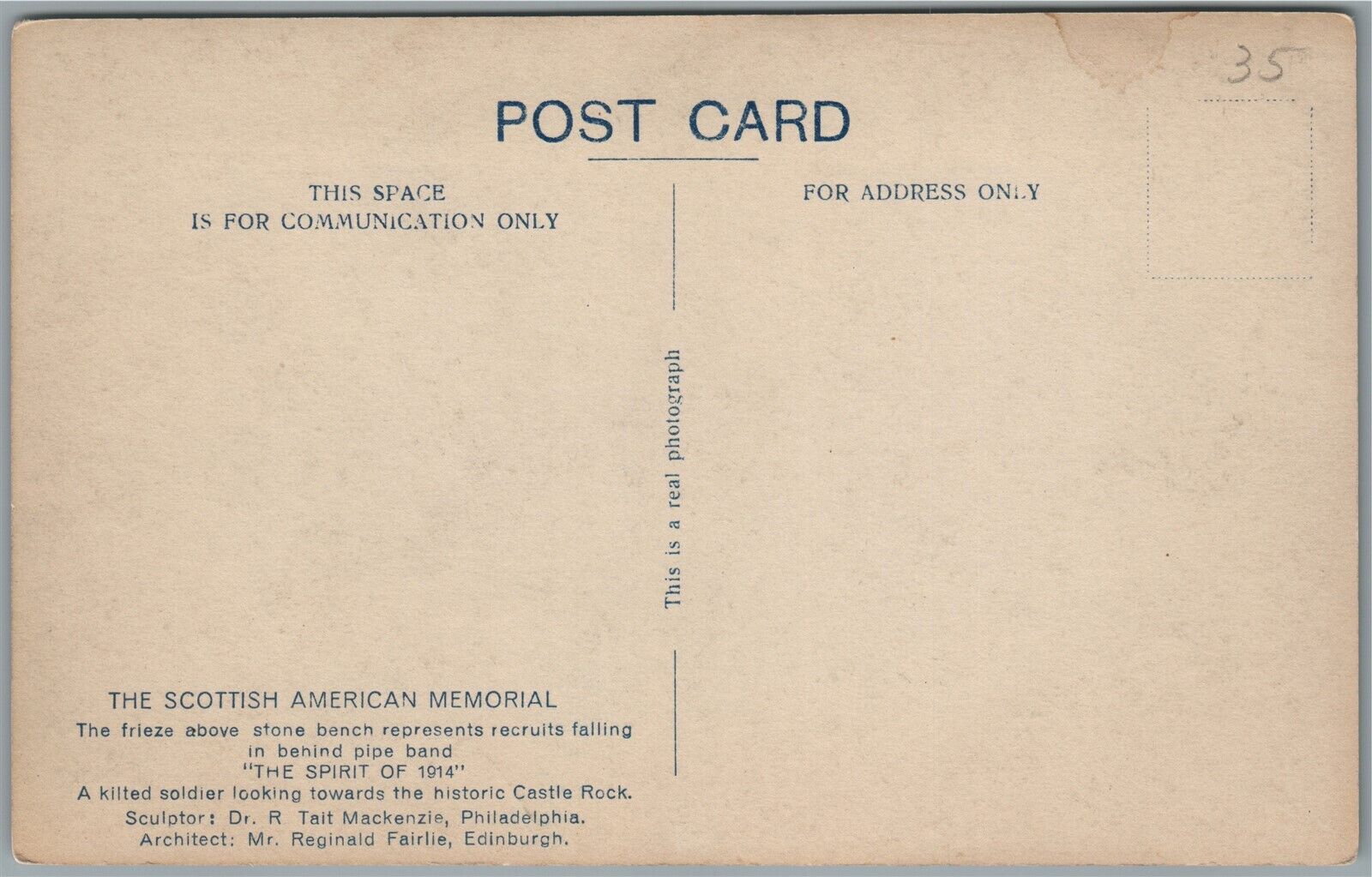 SCOTTISH AMERICAN WWI MEMORIAL in EDINBURGH ANTIQUE REAL PHOTO POSTCARD RPPC