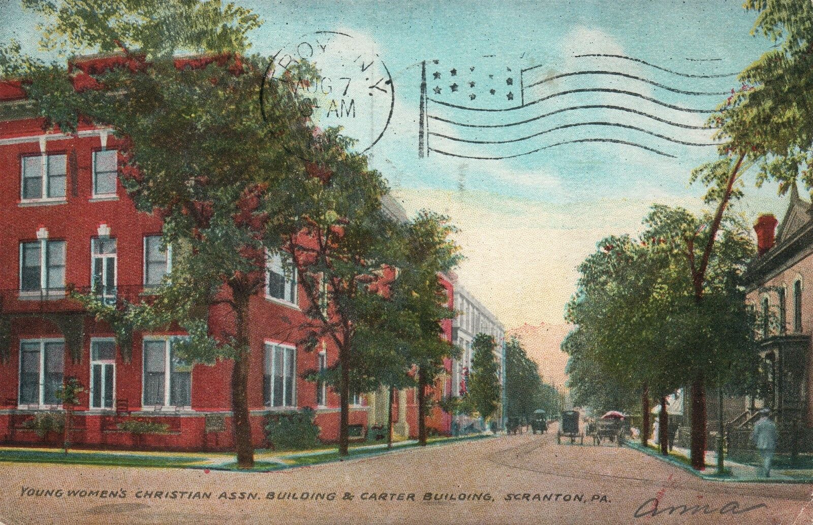 SCRANTON YOUNG WOMEN'S CHRISTIAN ASSN. & CARTER BUILDING 1910 ANTIQUE POSTCARD
