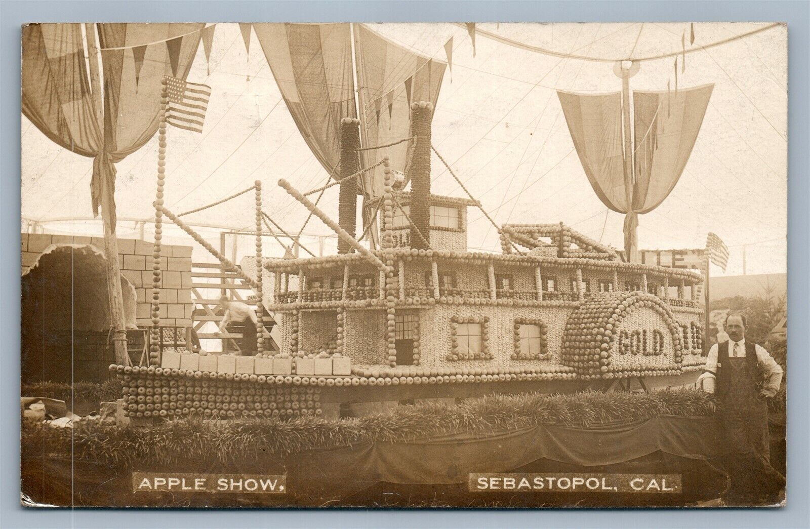 SEBASTOPOL CA APPLE SHOW ANTIQUE REAL PHOTO POSTCARD RPPC w/ CORK CANCEL