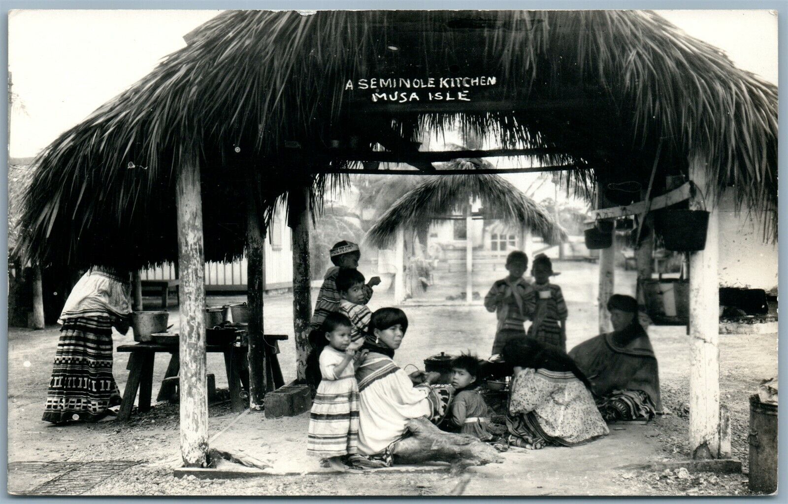 SEMINOLE INDIAN KITCHEN MUSA ISLE FLORIDA VINTAGE REAL PHOTO POSTCARD RPPC