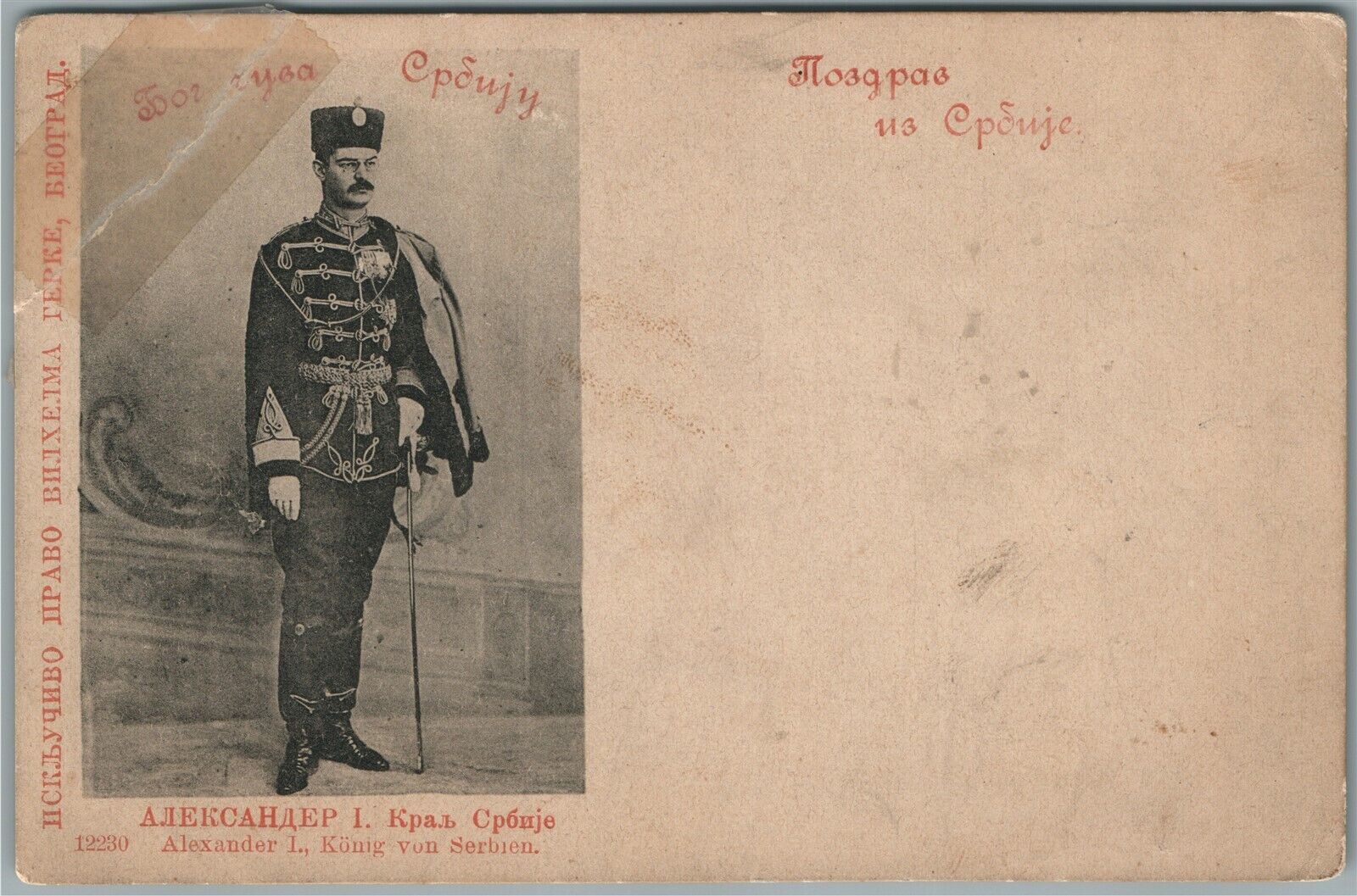 SERBIAN KING ALEXANDER I ANTIQUE POSTCARD