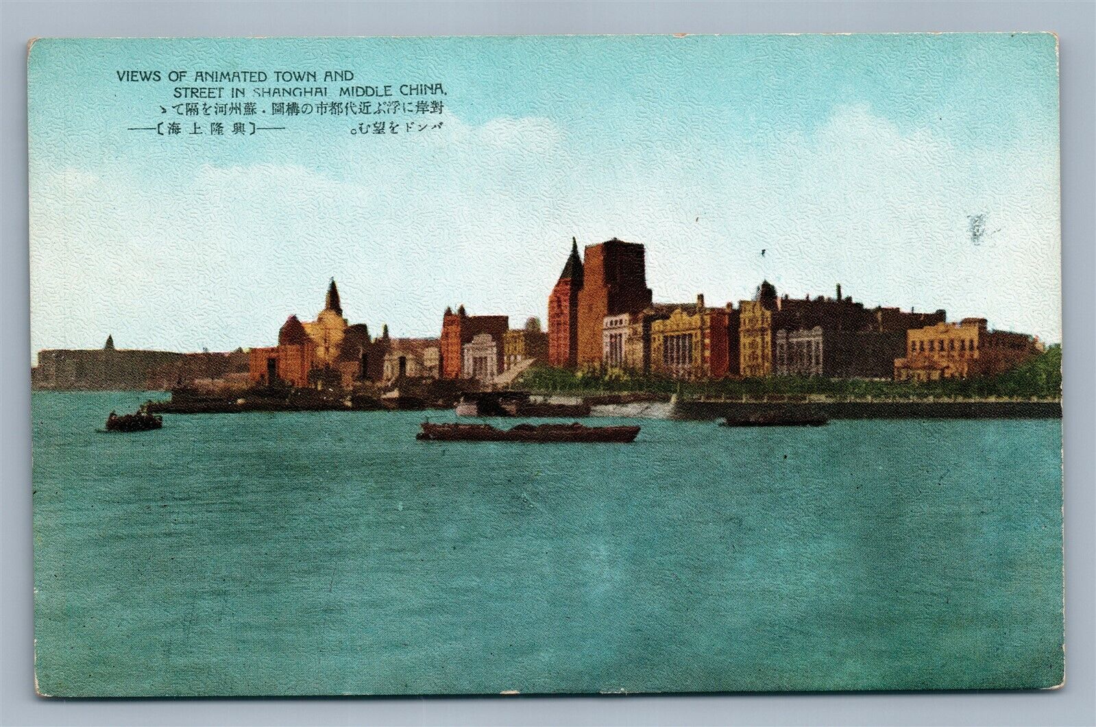 SHANGHAI CHINA ANIMATED TOWN & STREET VINTAGE POSTCARD