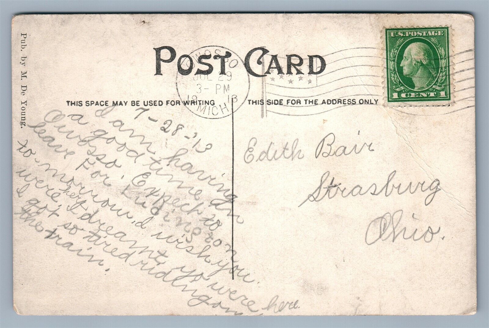 SHIAWASSEE RIVER MI 1913 ANTIQUE POSTCARD