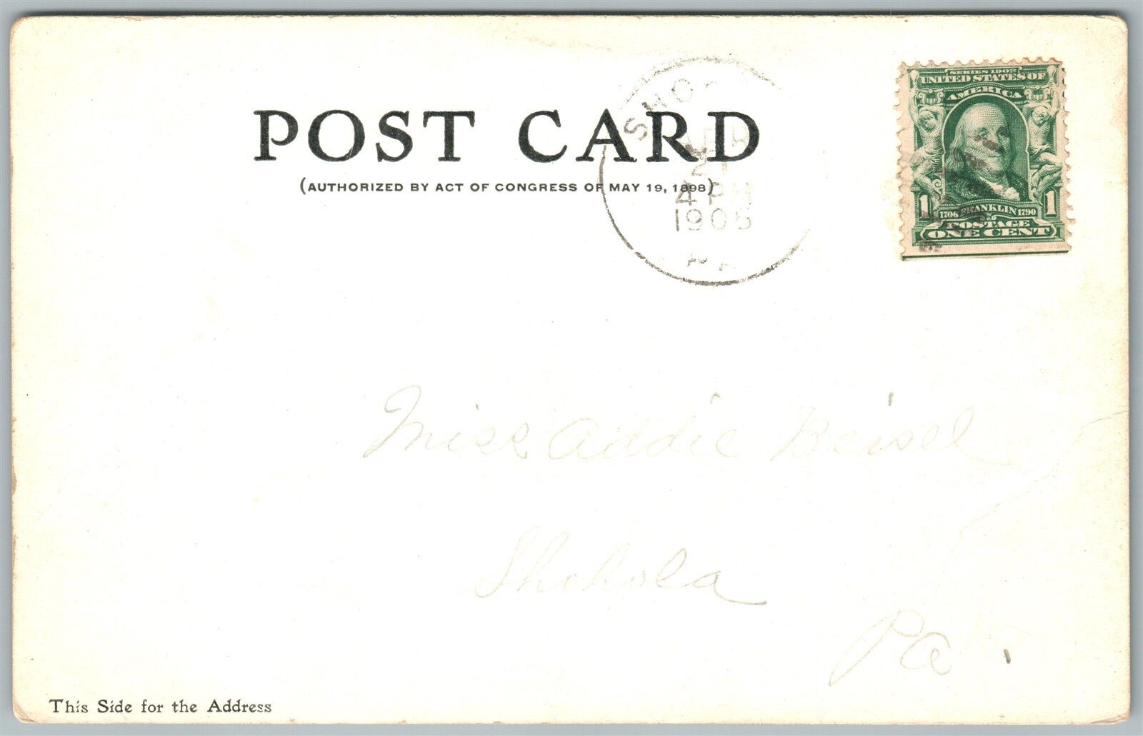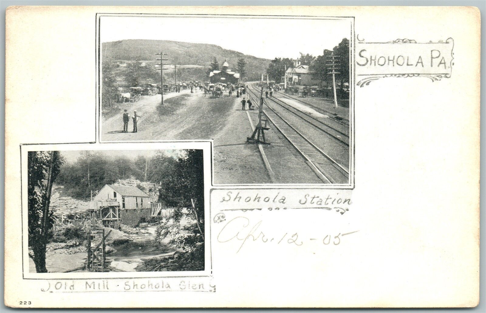 SHOHOLA PA RAILROAD STATION 1905 UNDIVIDED ANTIQUE POSTCARD railway depot