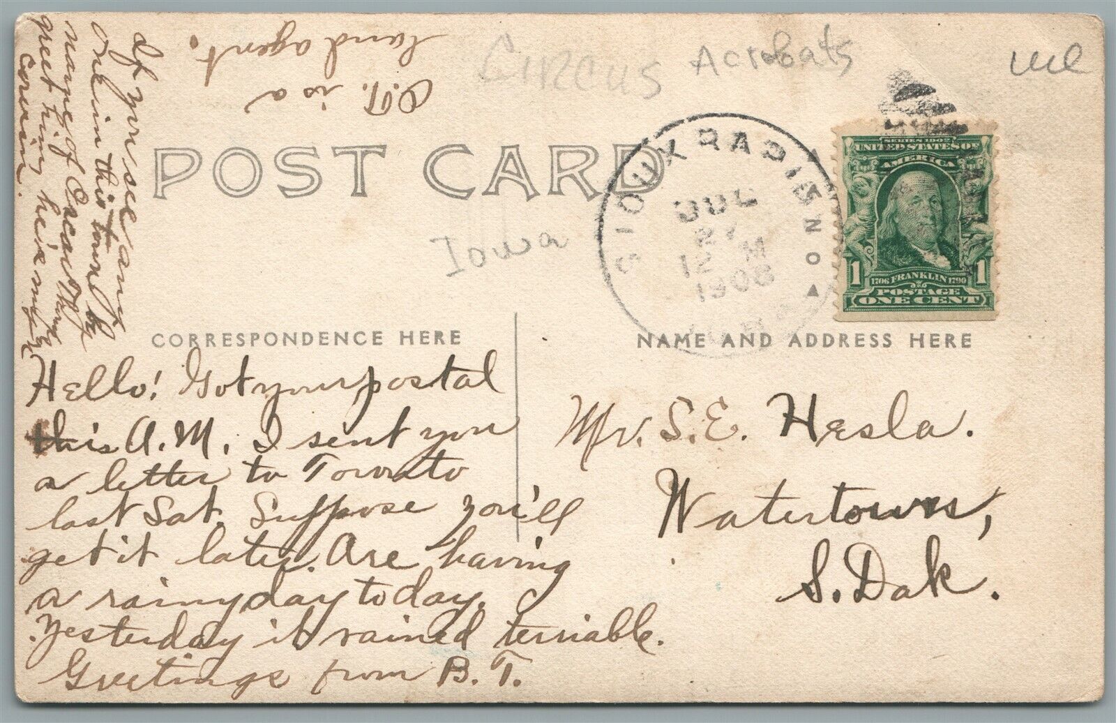 SIOUX RAPIDS IA STREET CIRCUS ACROBATS ANTIQUE REAL PHOTO POSTCARD RPPC