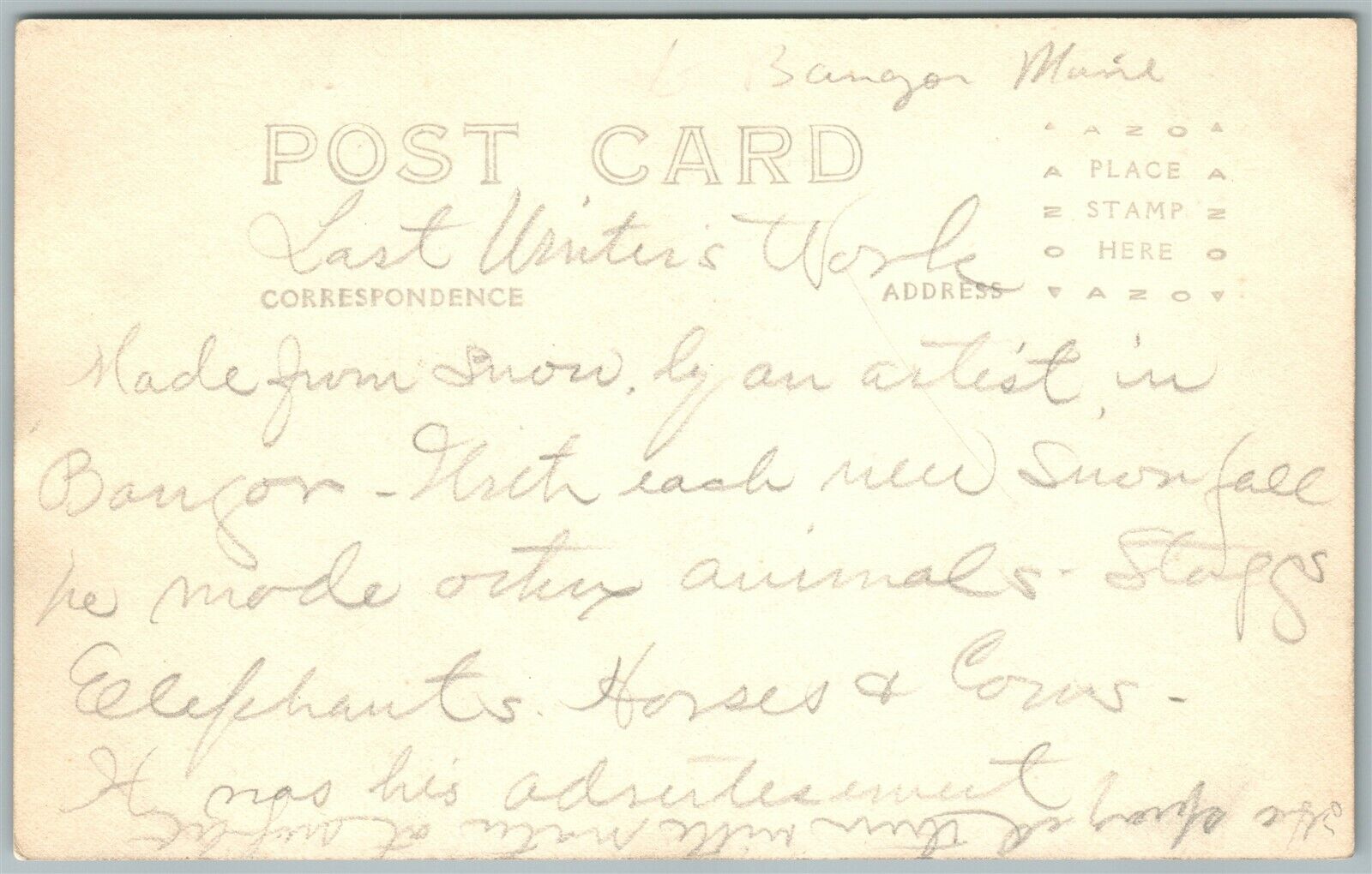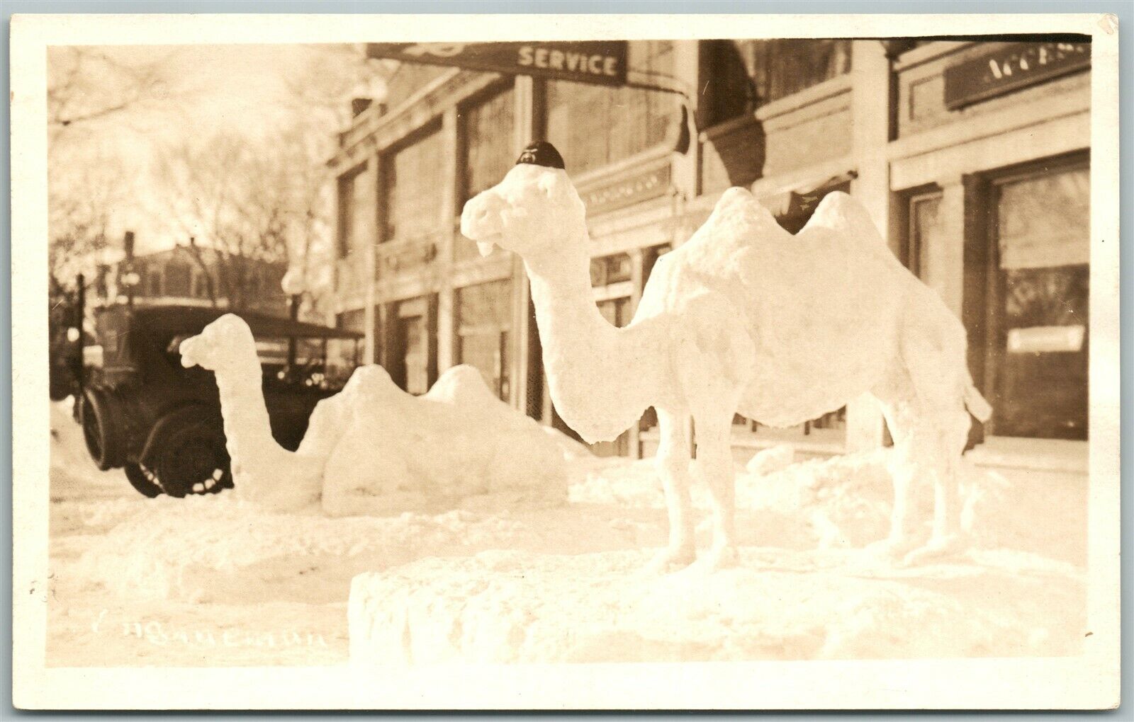 SNOW CAMELS ANTIQUE REAL PHOTO POSTCARD RPPC BANGOR MAINE