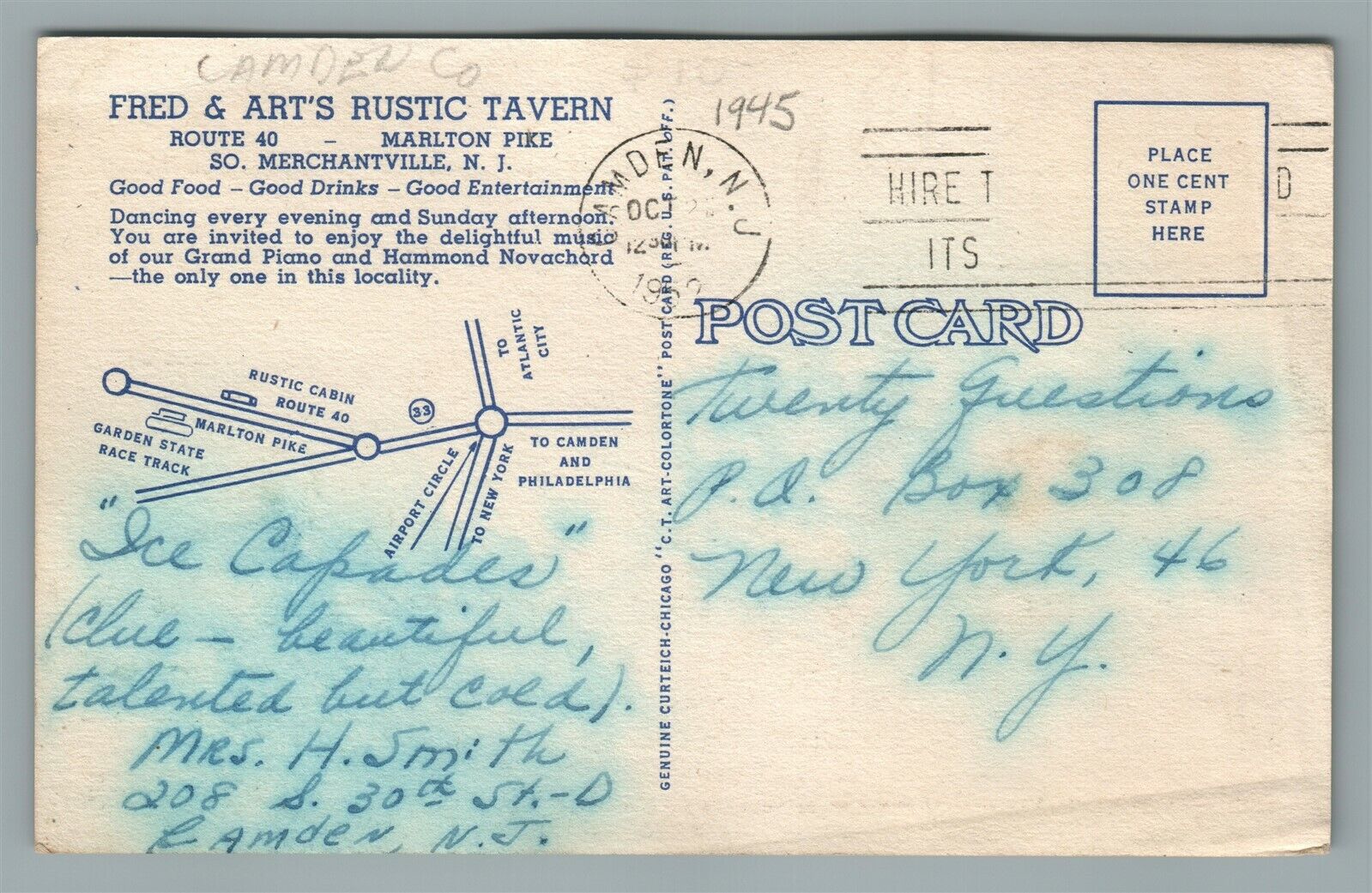 SO. MERCHANTVILLE NJ FRED & ART'S RUSTIC TAVERN VINTAGE POSTCARD