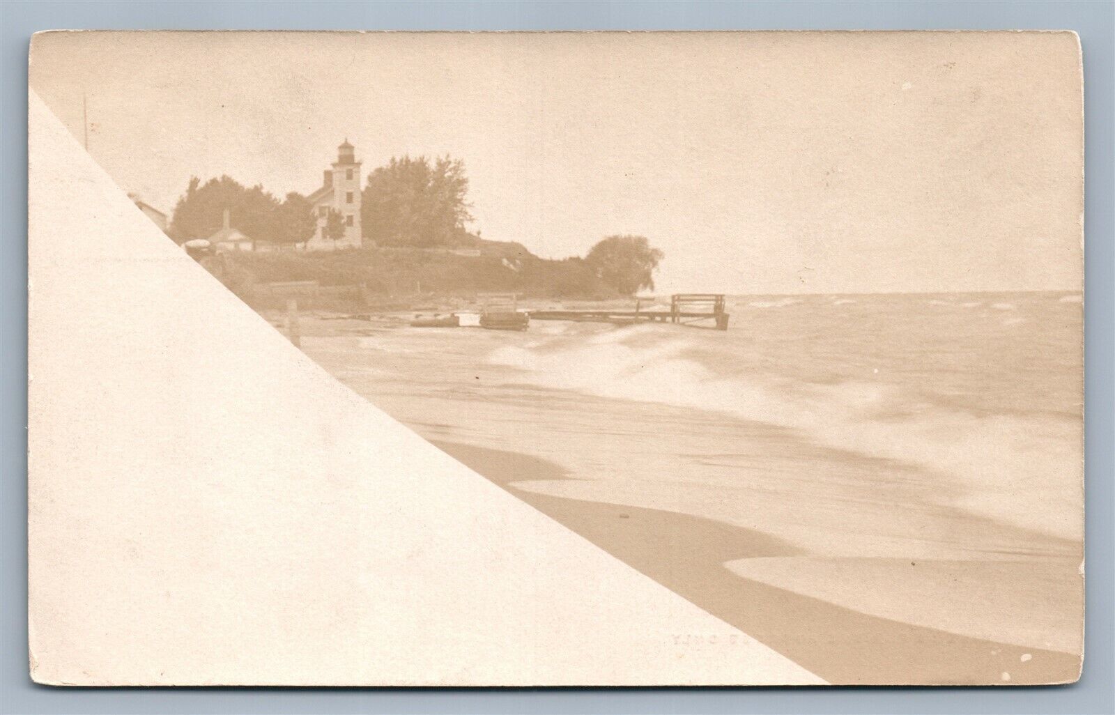 SODUS POINT NY LIGHT HOUSE ANTIQUE REAL PHOTO POSTCARD RPPC