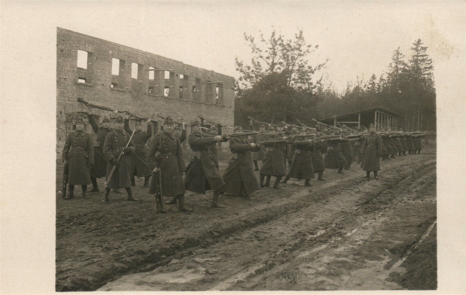 SOLDIERS EXCERCISING w/ RIFLES ANTIQUE REAL PHOTO POSTCARD RPPC
