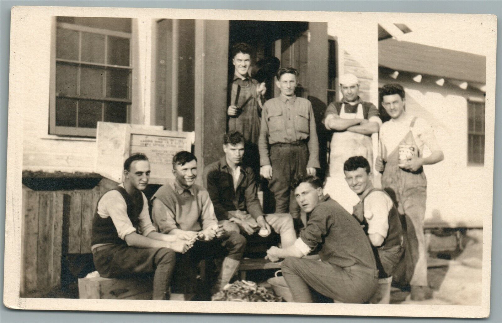 SOLDIERS PEELING THE POTATOES ANTIQUE REAL PHOTO POSTCARD RPPC