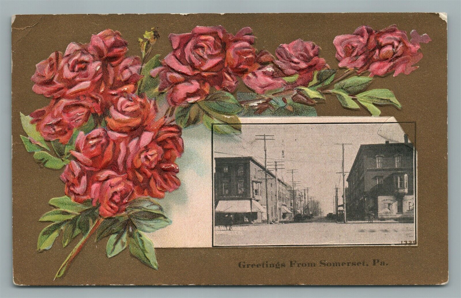 SOMERSET PA GREETINGS w/ STREET SCENE ANTIQUE POSTCARD
