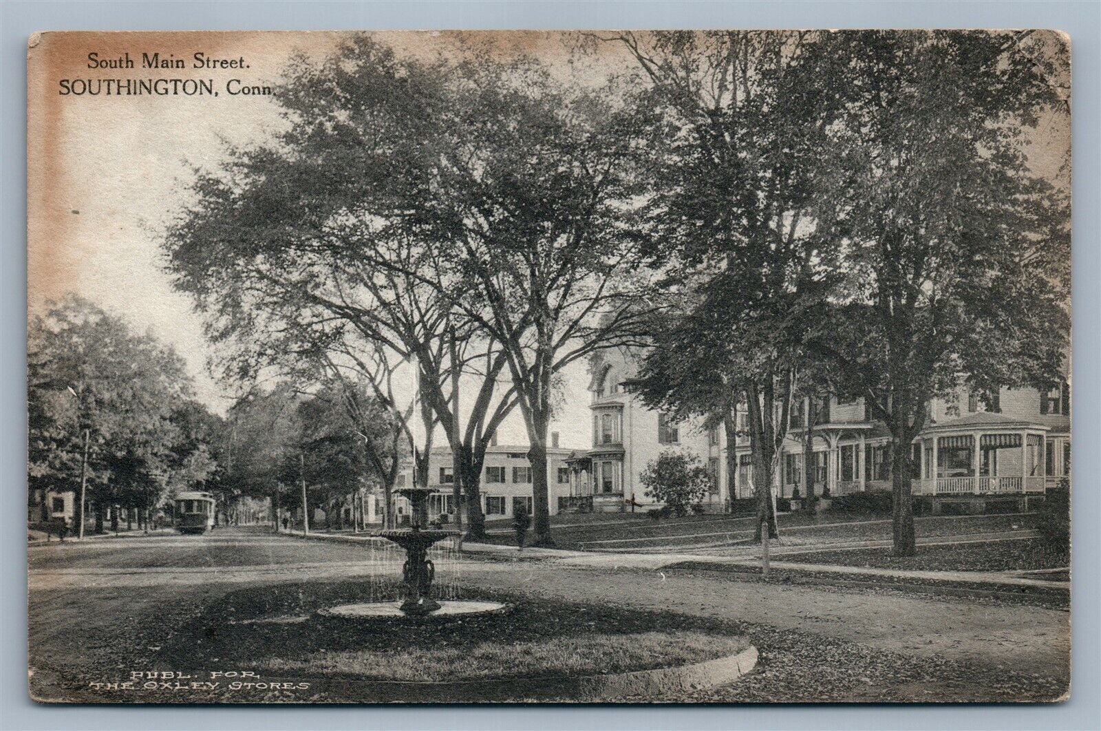 SOUTHINGTON CT SOUTH MAIN STREET 1912 ANTIQUE POSTCARD w/ CORK CANCEL