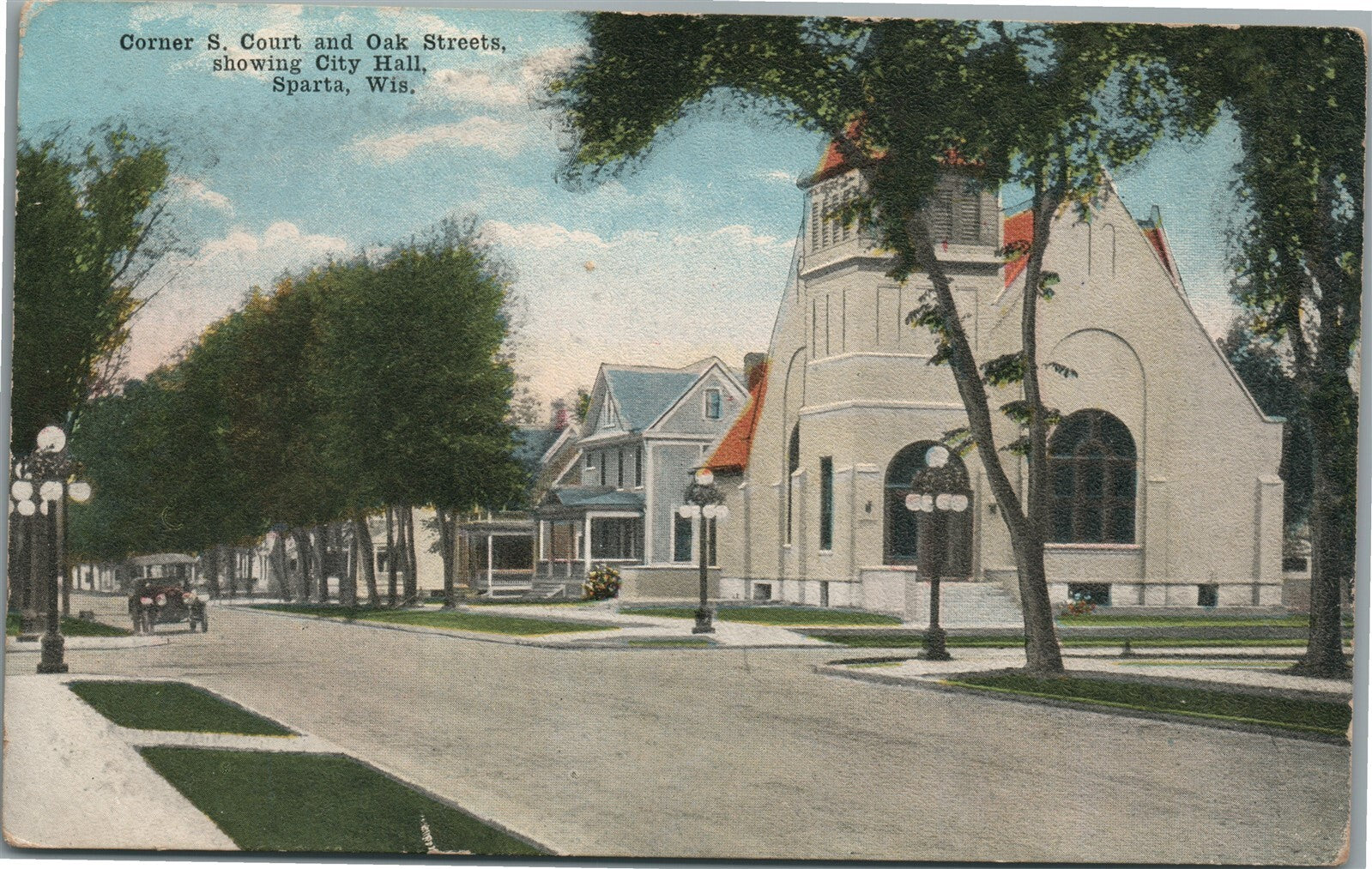 SPARTA WI CORNER of S.COURT & OAK STREET ANTIQUE POSTCARD