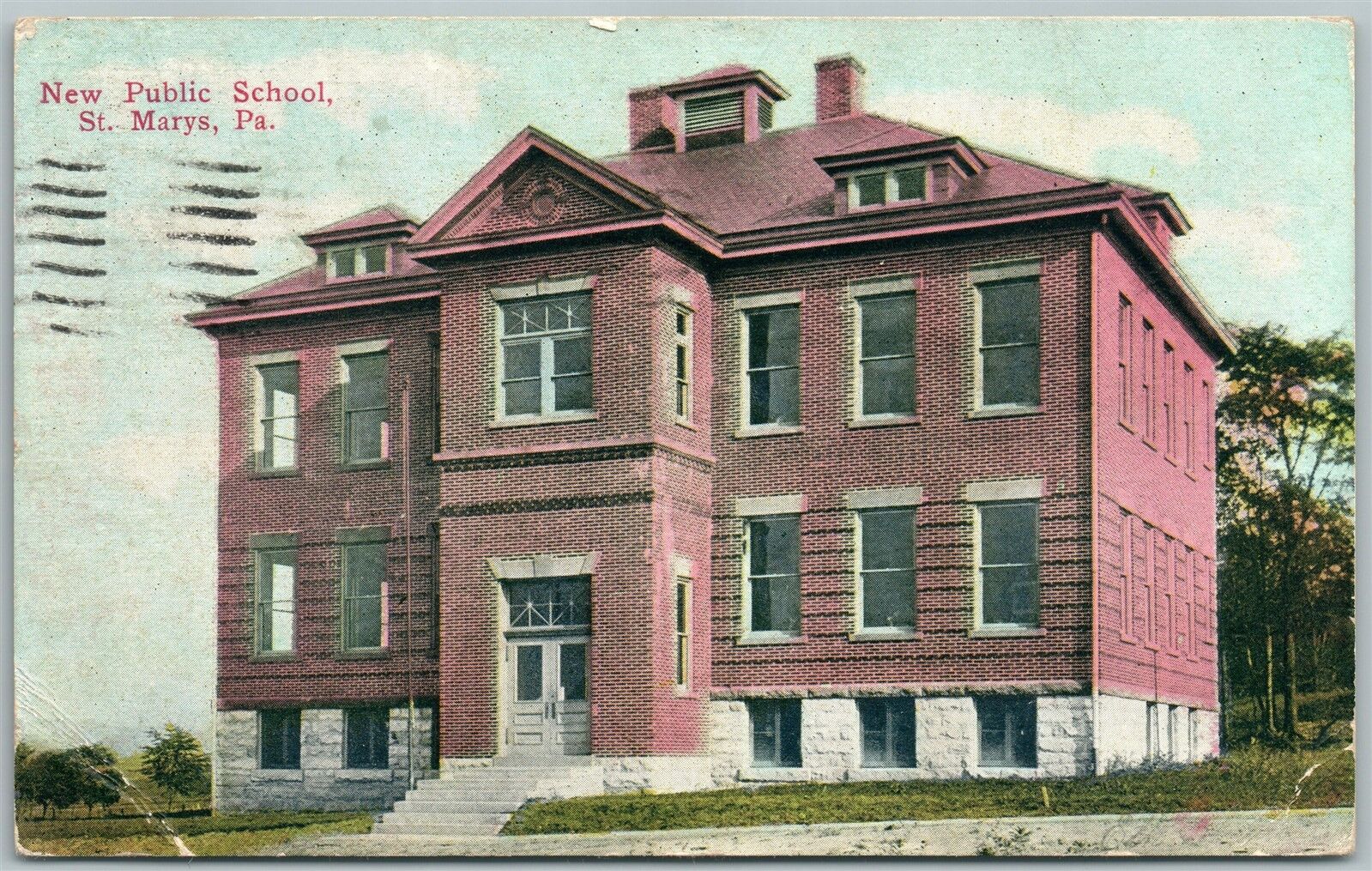 ST.MARY'S PA NEW PUBLIC SCHOOL 1912 ANTIQUE POSTCARD