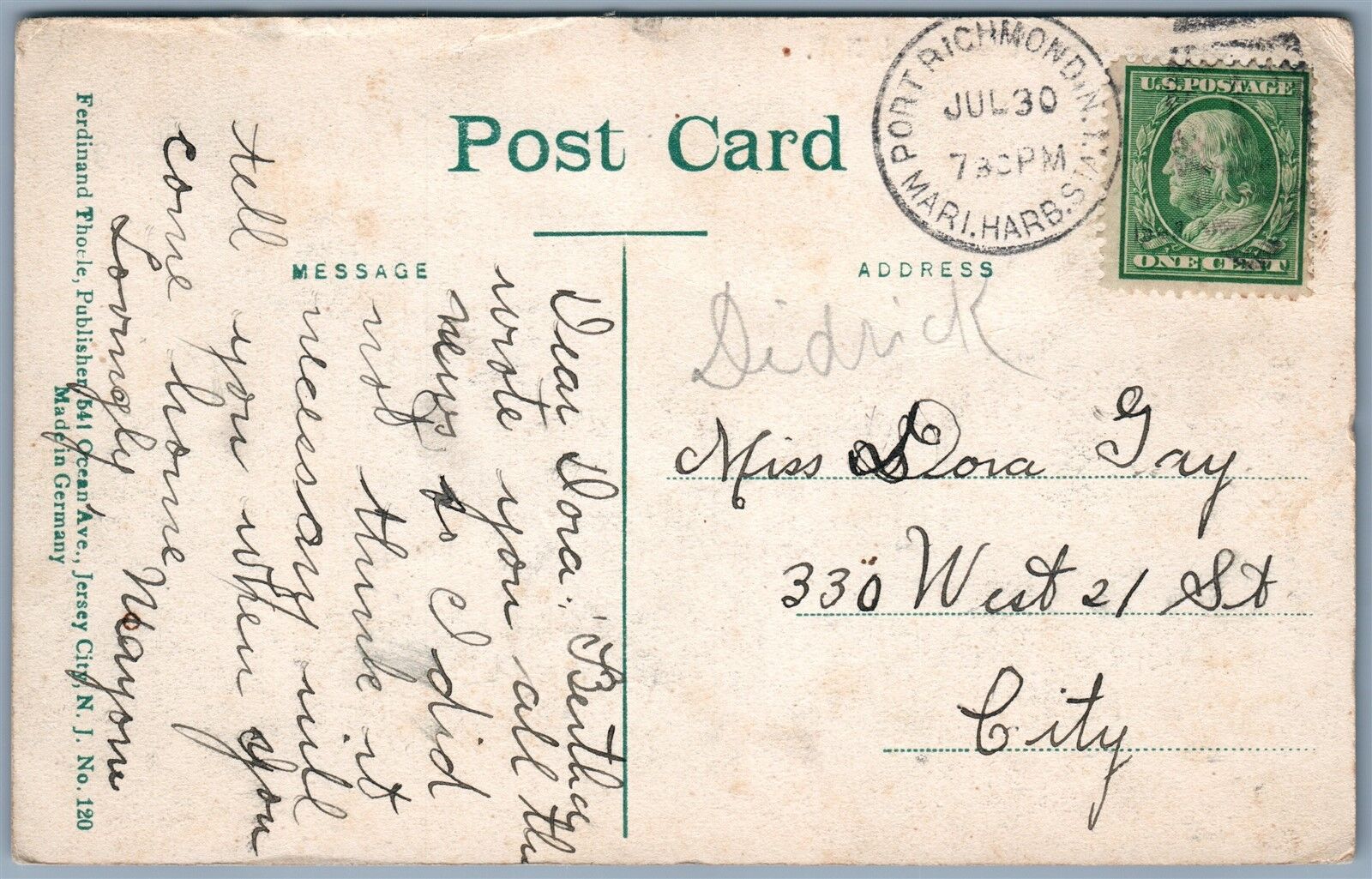 STATEN ISLAND NY MORAVIAN CEMETERY ANTIQUE POSTCARD