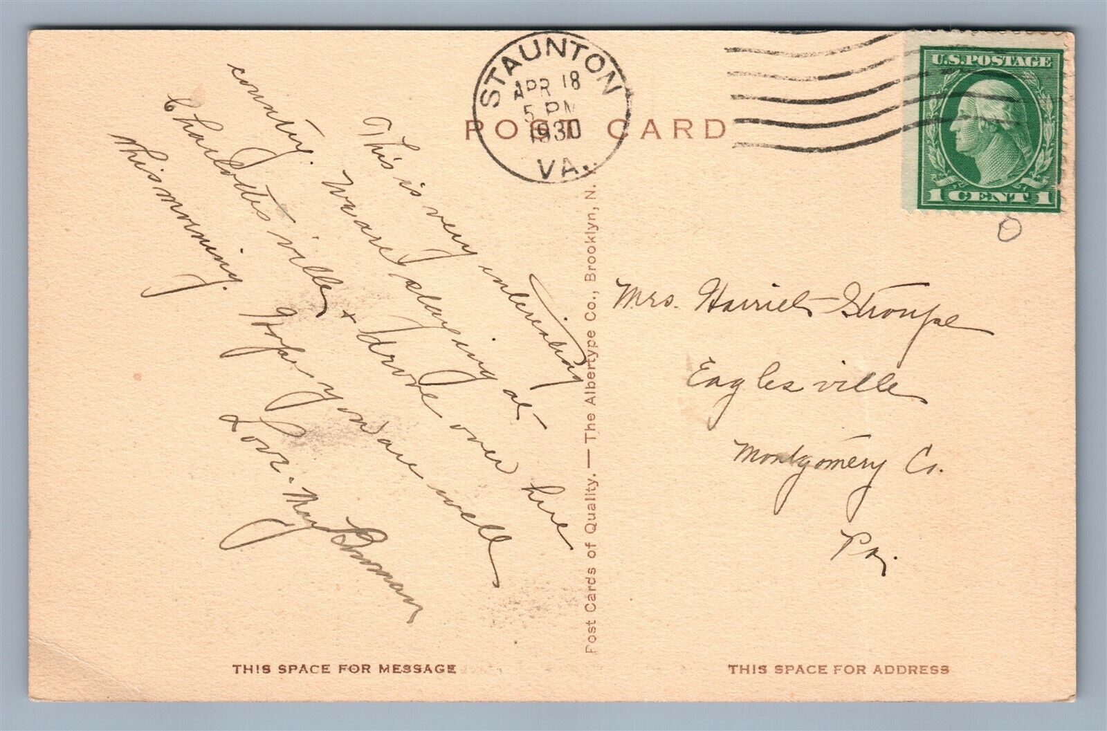 STAUNTON VA BIRTHPLACE OF WOODROW WILSON ANTIQUE POSTCARD PATRIOTIC