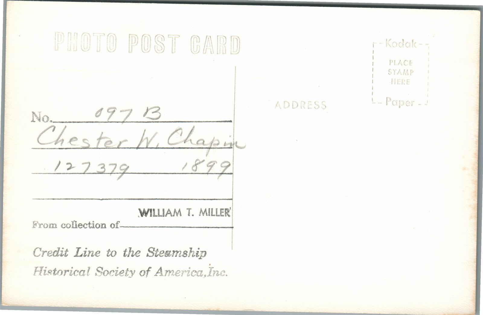 STEAMSHIP CHESTER W. CHAPIN VINTAGE REAL PHOTO POSTCARD RPPC