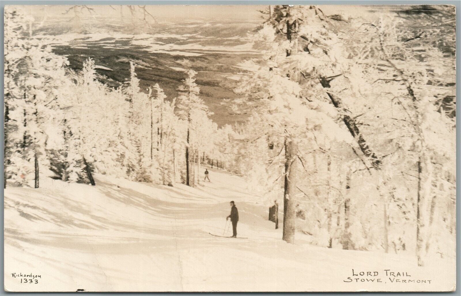 STOWE VT LORD SKIING TRAIL VINTAGE REAL PHOTO POSTCARD RPPC